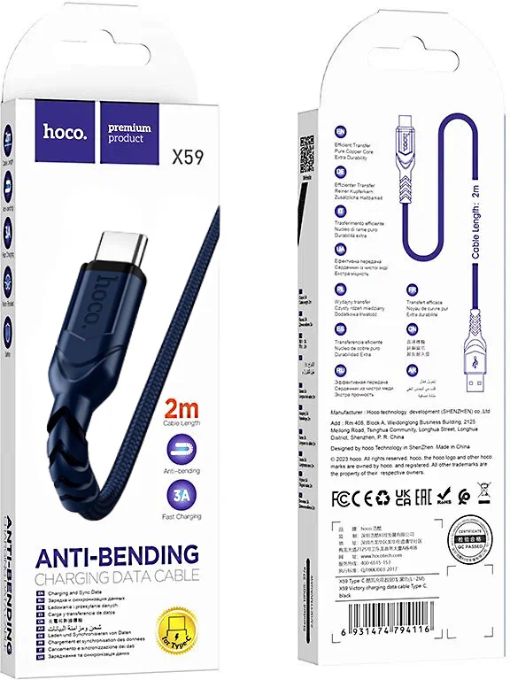 Купить Кабель Type-C - USB для быстрой зарядки XOKO X59, 2 метра, черный / Ззарядка
