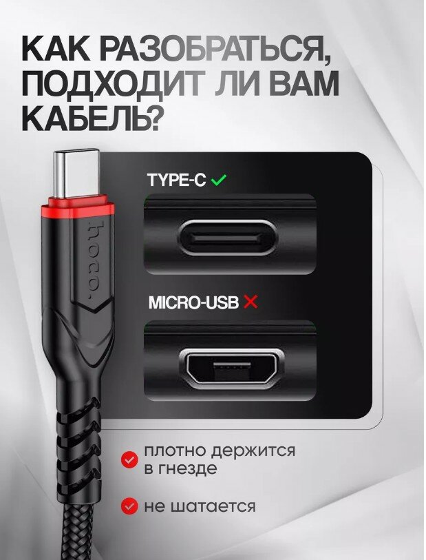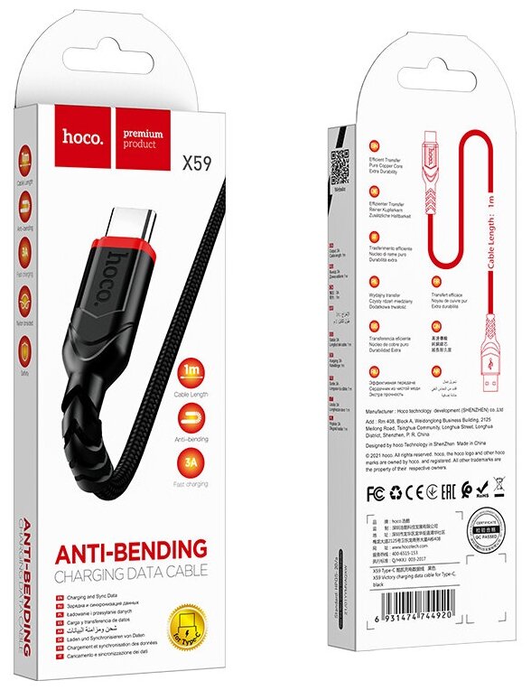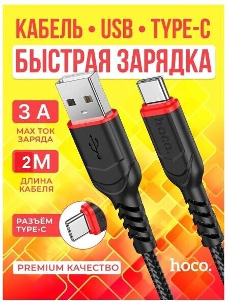 Кабель HOCO X59 Victory USB на Type-C, 3A, 1 метр черный, для зарядки гаджетов и передачи данных