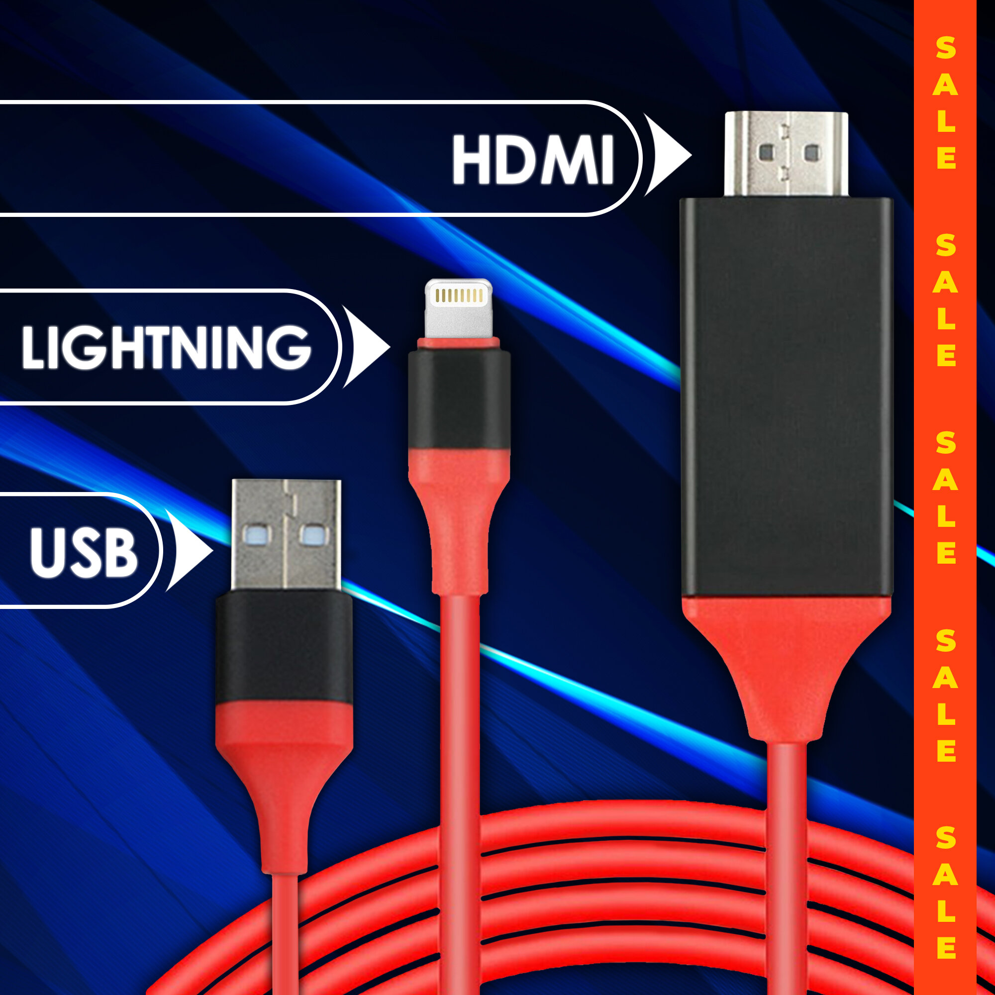 Купить Hdmi кабель-переходник для iphone Lightning с питанием через USB, 2 м, удлинитель для айфона, провод переходник, красный