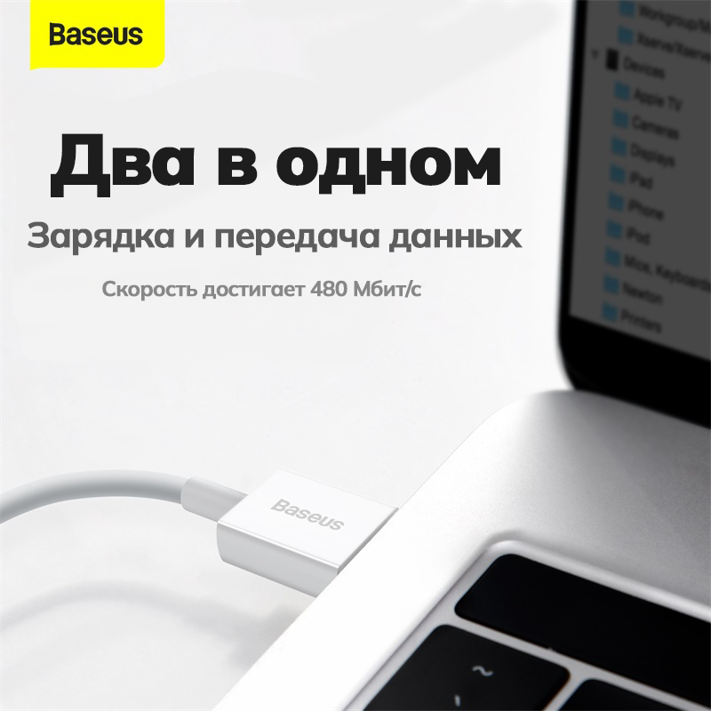СохранитьКабель BASEUS Superior Series Fast Charging, USB - Lightning, 2.4А, 25 см, белый. Для iPhone и iPad. интересное: