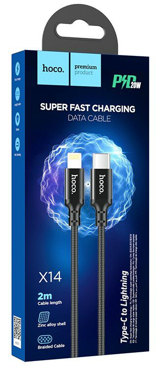 Hoco Кабель Type-C - Lightning, 1м, PD20W, X14 Чёрный