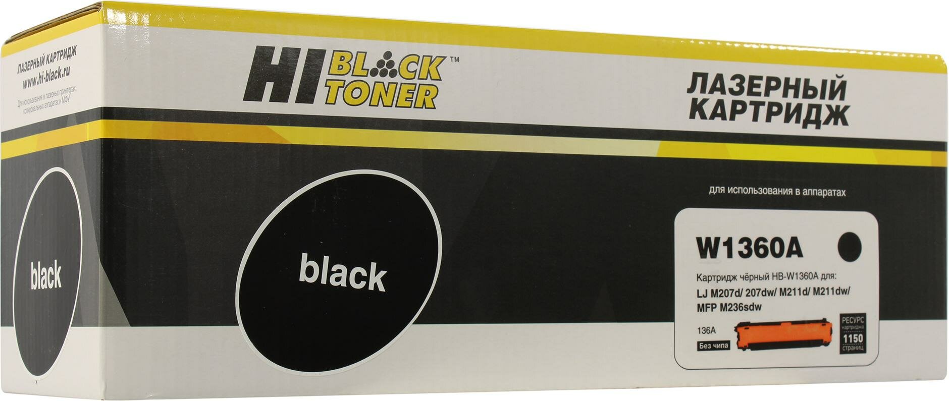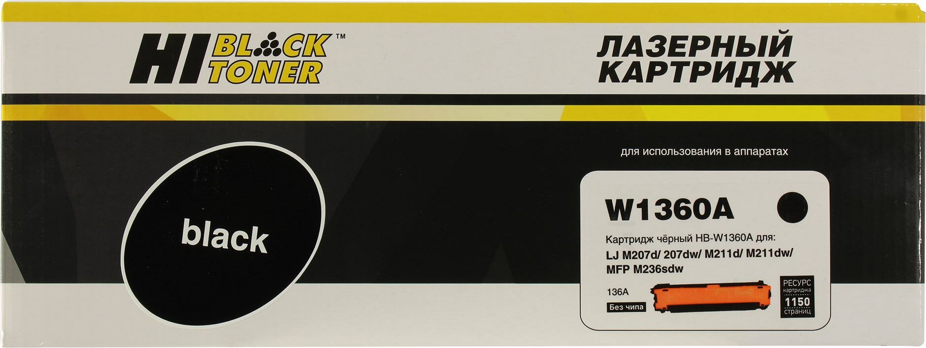 Картридж Hi-Black W1360X для HP LaserJet M211/MFP M236, 2,6K без чипа , черный, 2600 страниц