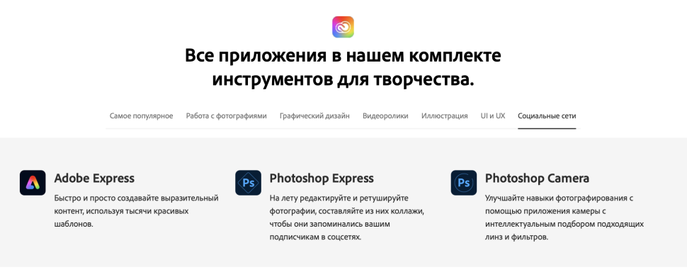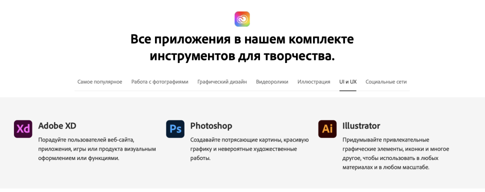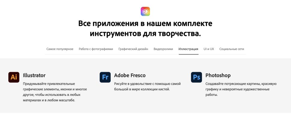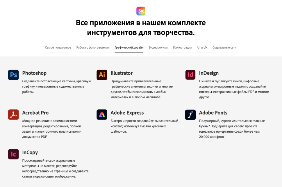 | Состав пакета | Все приложения в подписке Adobe Creative Cloud |