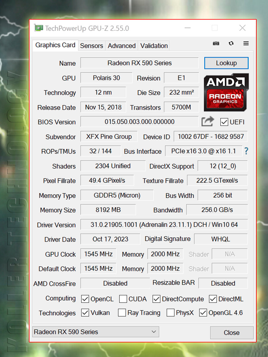 | Название видеокарты | AMD Radeon RX 590 |