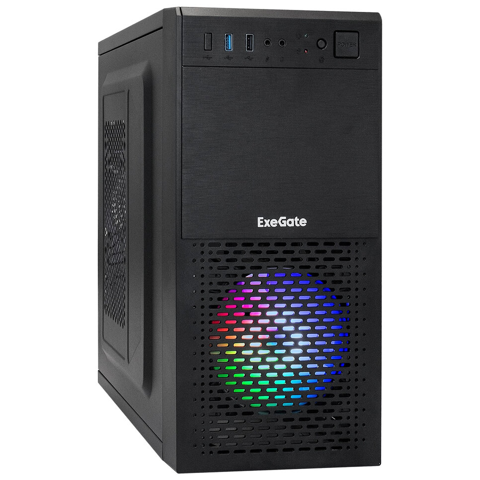 Корпус Minitower ExeGate mEVO-7807-NPX500 (mATX, БП 500NPX 12см, 1*USB+1*USB3.0, черный, 1 вент. 12см с RGB подсветкой) EX292984RUS