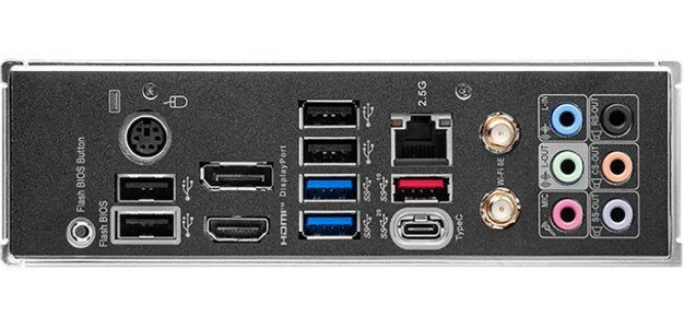 | Разъемы на задней панели | 2 x SMA (для антенны Wi-Fi), 2 x USB 3.2 Gen1 Type-A, 4 x USB 2.0 Type-A, DisplayPort, HDMI, LAN RJ-45, PS/2 (клавиатура/мышь), USB 3.2 Gen2 Type-A, USB 3.2 Gen2x2 Type-C |