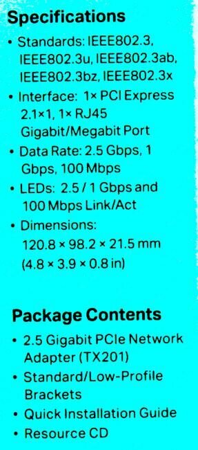 Сетевая карта TP-Link TX201, PCI-E, 2.5 Gigabit