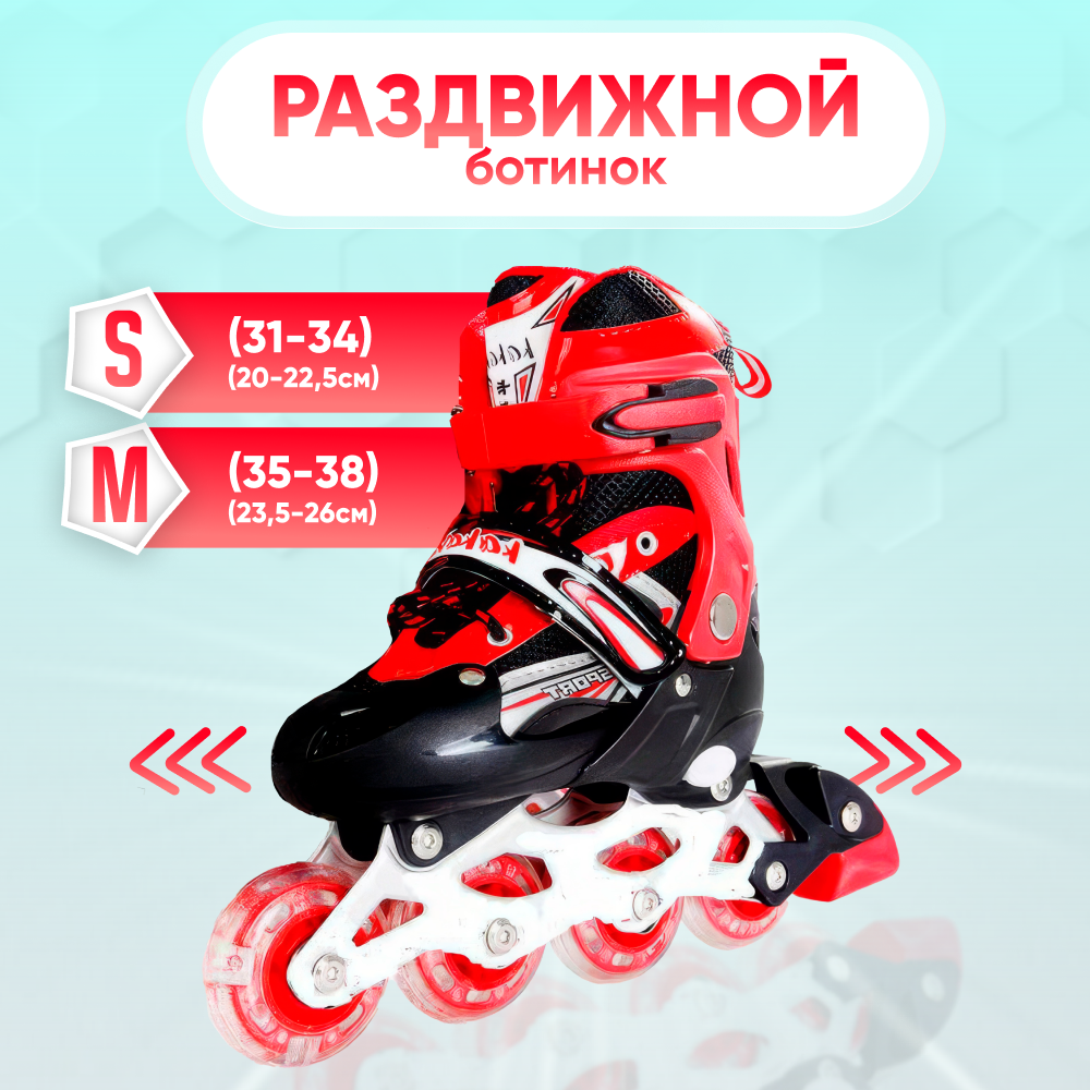 Ролики детские ДОМ ХИТ ДЕТИ, раздвижные трансформер с полным комплектом защиты, комфорт и безопасность, размер 35-38