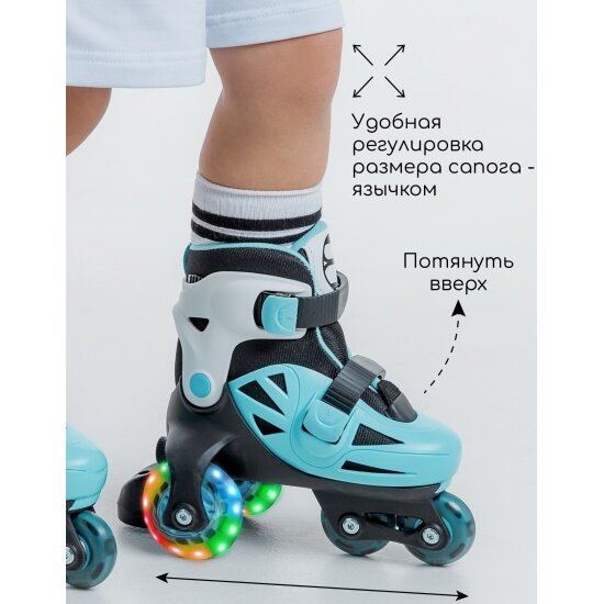 Роликовые коньки раздвижные Amarobaby Blow со светящимися колесами, черный/синий/серый, размер 29-32 интересное: