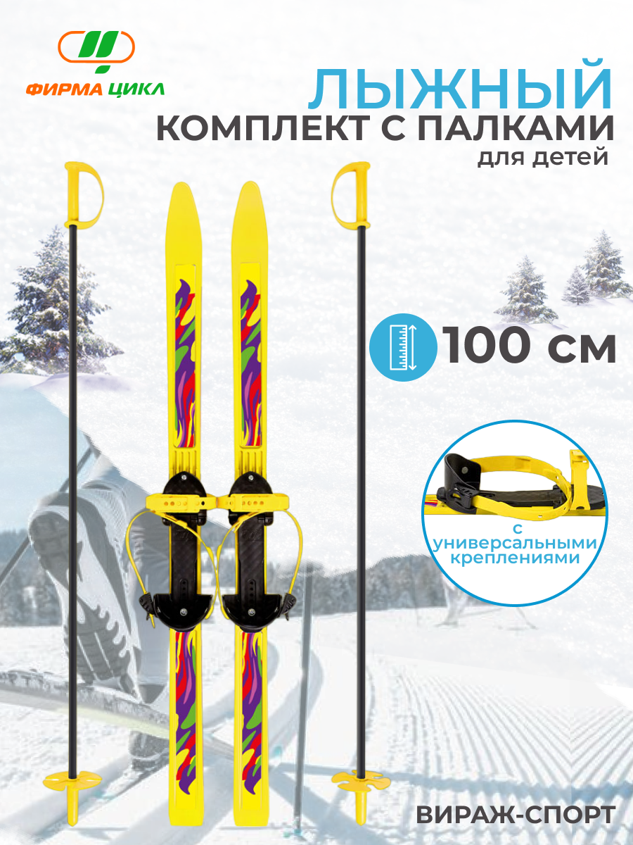 Купить Детские лыжи Цикл Вираж-спорт 100 см с палками и креплениями, лыжный комплект для детей