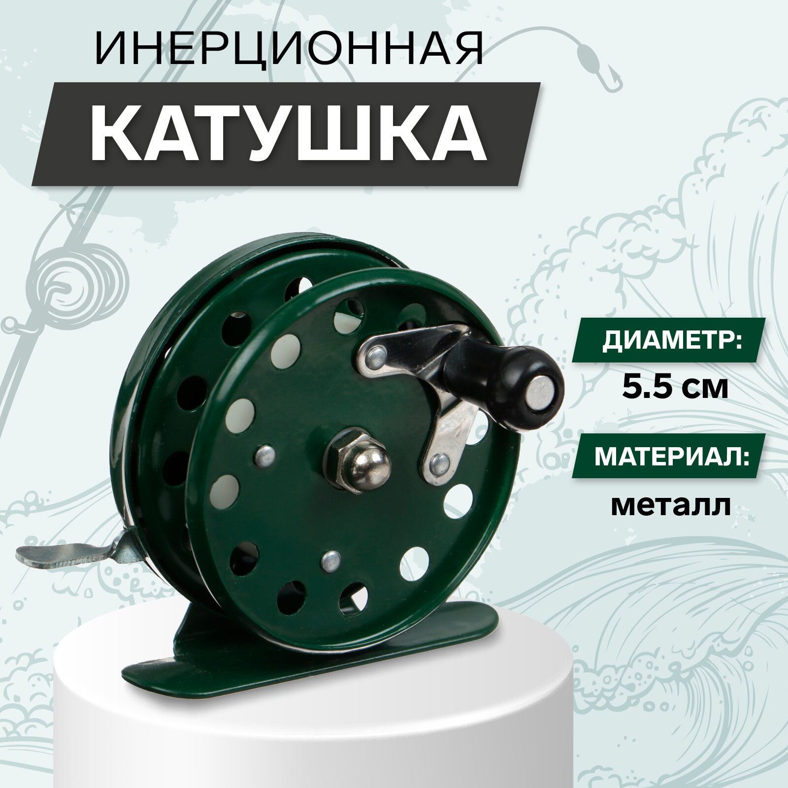 Купить Катушка инерционная, металл, диаметр 5.5 см, цвет темно-зелёный, 806 9913255