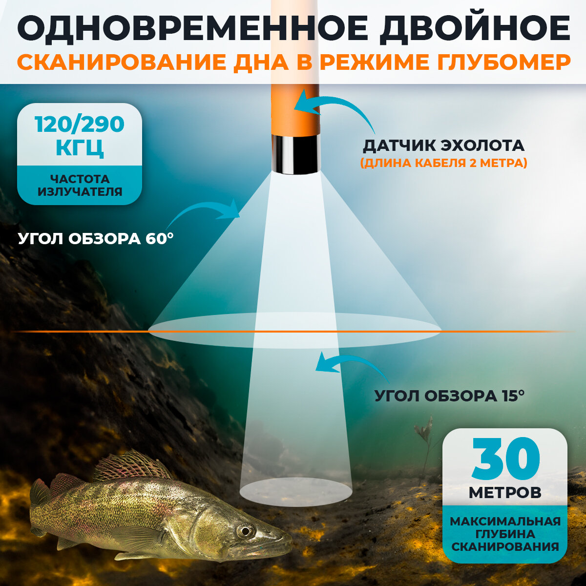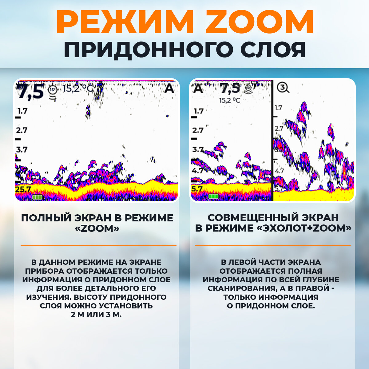 | Функции и интерфейсы | датчик температуры, отображение структуры дна |