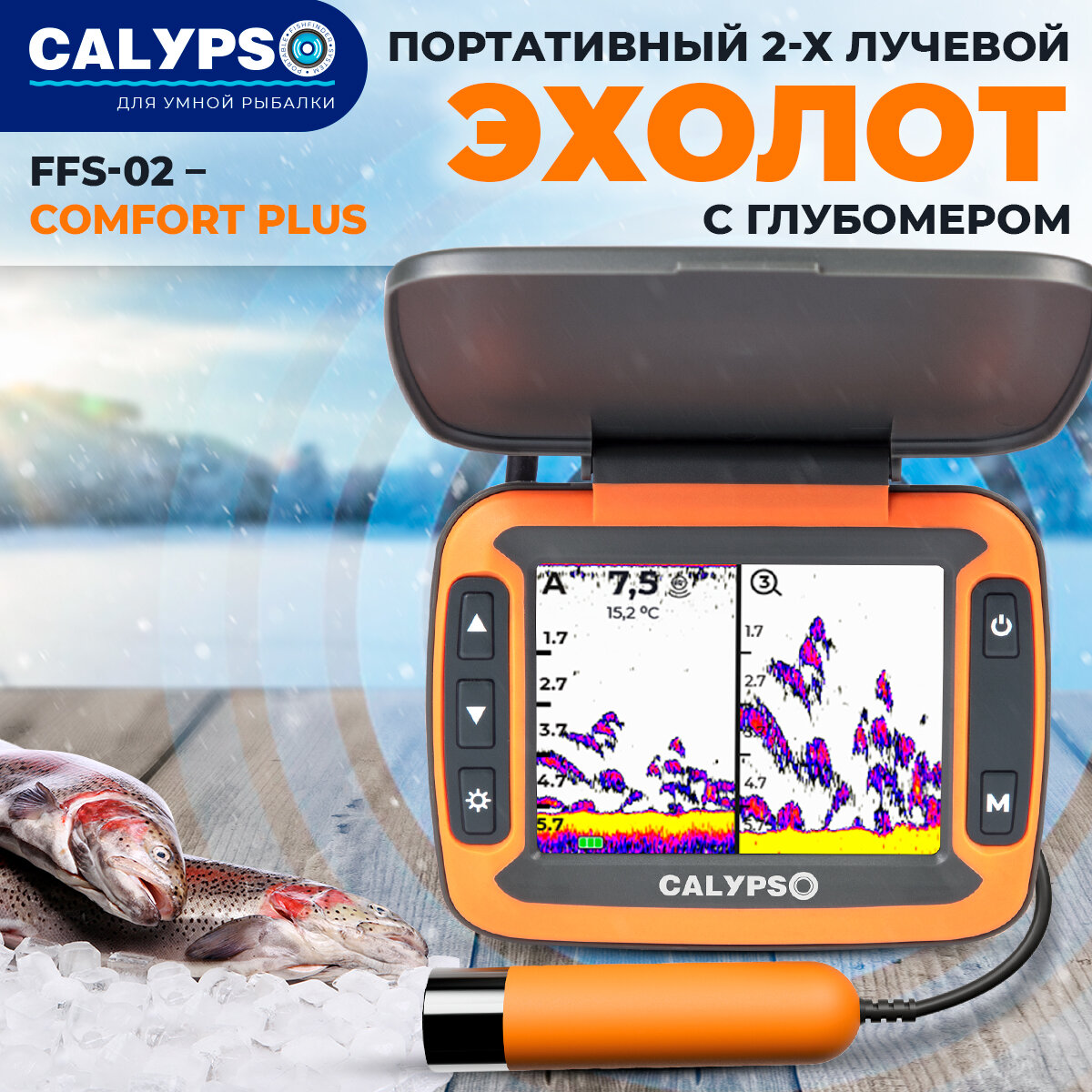 Купить Портативный эхолот Calypso двух-лучевой с глубомером FFS-02 COMFORT PLUS