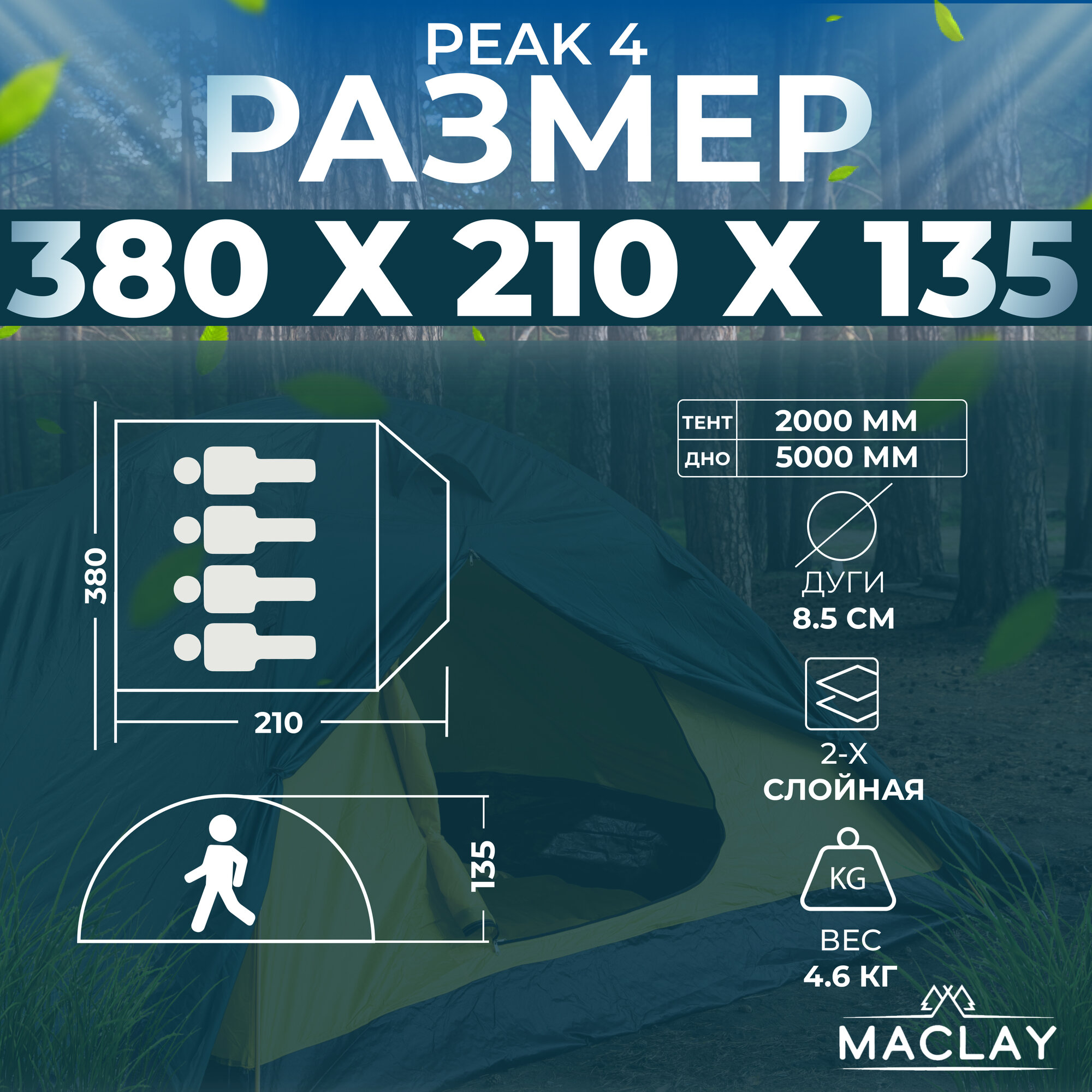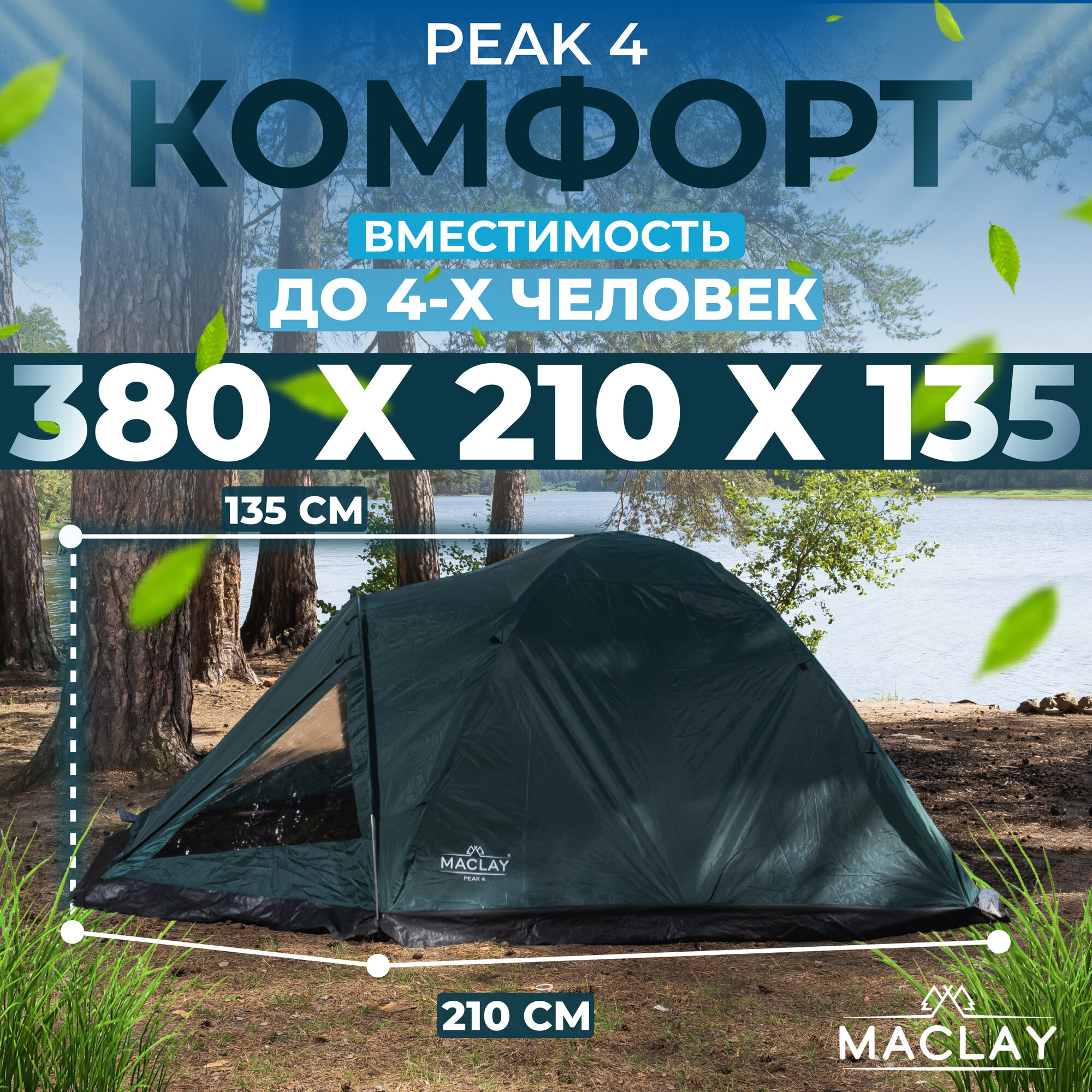 Maclay Палатка туристическая, трекинговая maclay PEAK 4, 4-местная, с тамбуром