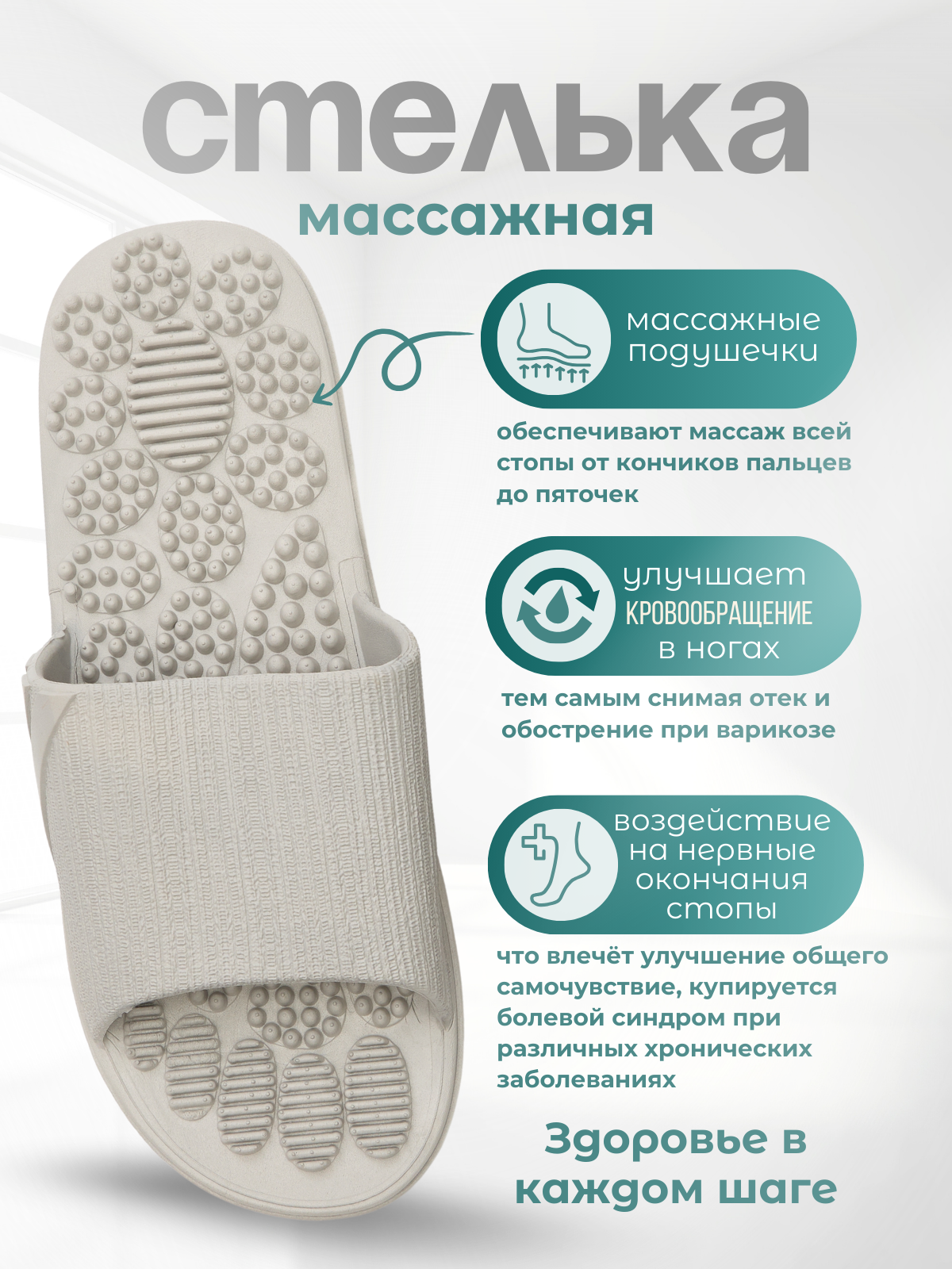 Купить Массажные тапочки аккупунктурные Карта Стопы, шиацу, серые, 44-45