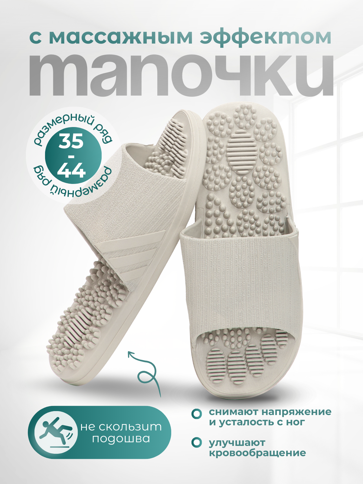 Массажные тапочки аккупунктурные Карта Стопы, шиацу, светло-серые, 40-41