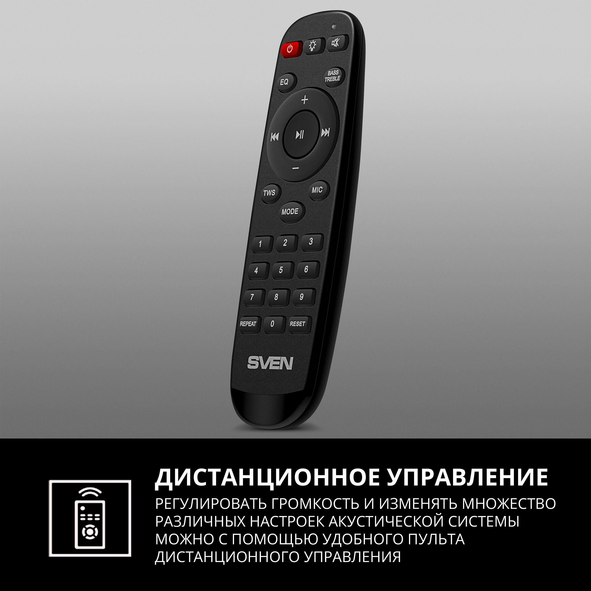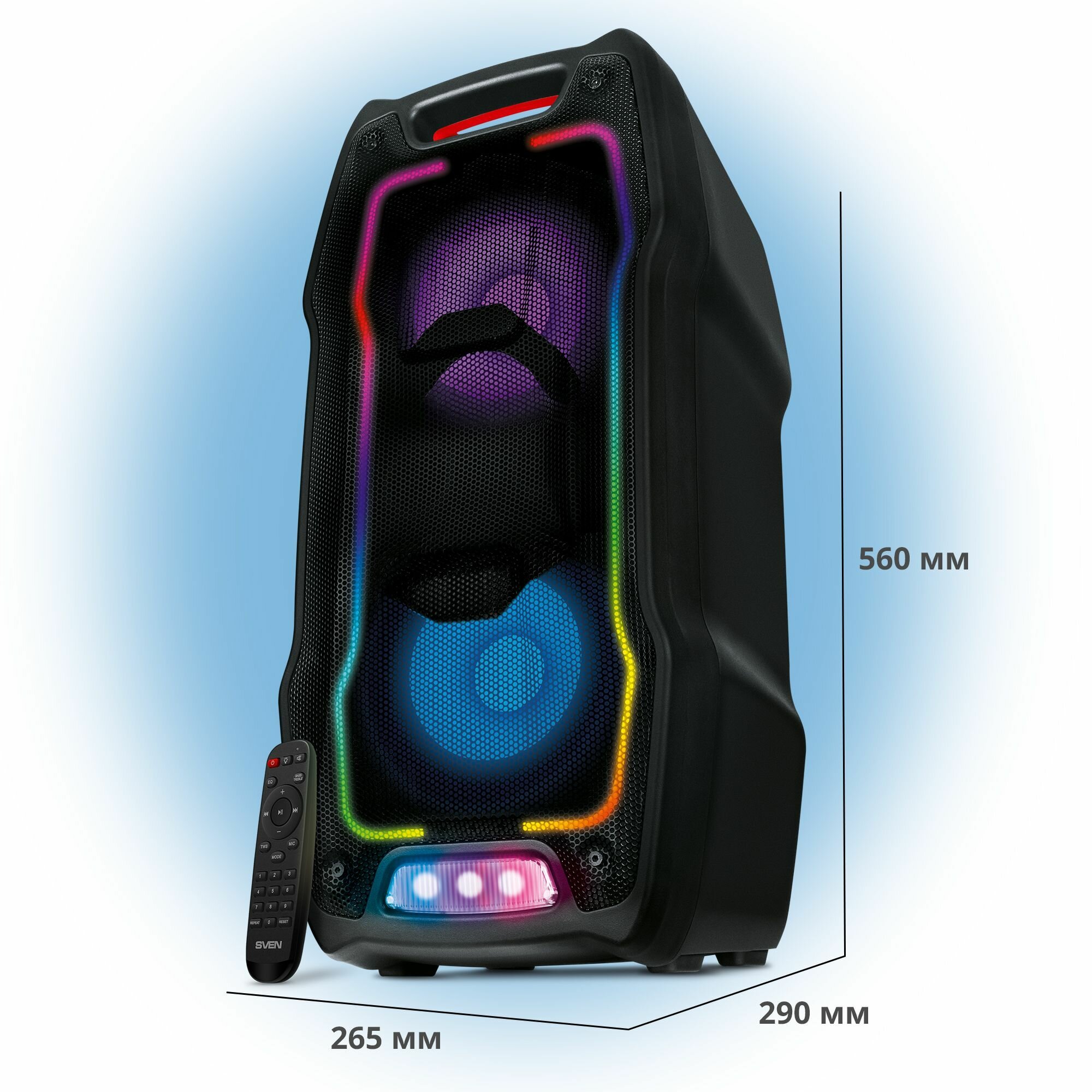 Портативная акустическая система SVEN PS-730, мощность 2x50 Вт (RMS), Bluetooth, FM, USB, microSD, LED-дисплей, встроенный аккумулятор