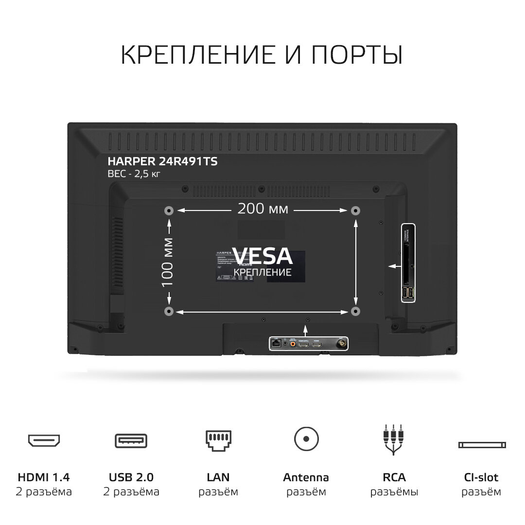 Телевизор LED HARPER 24R491TS 24"