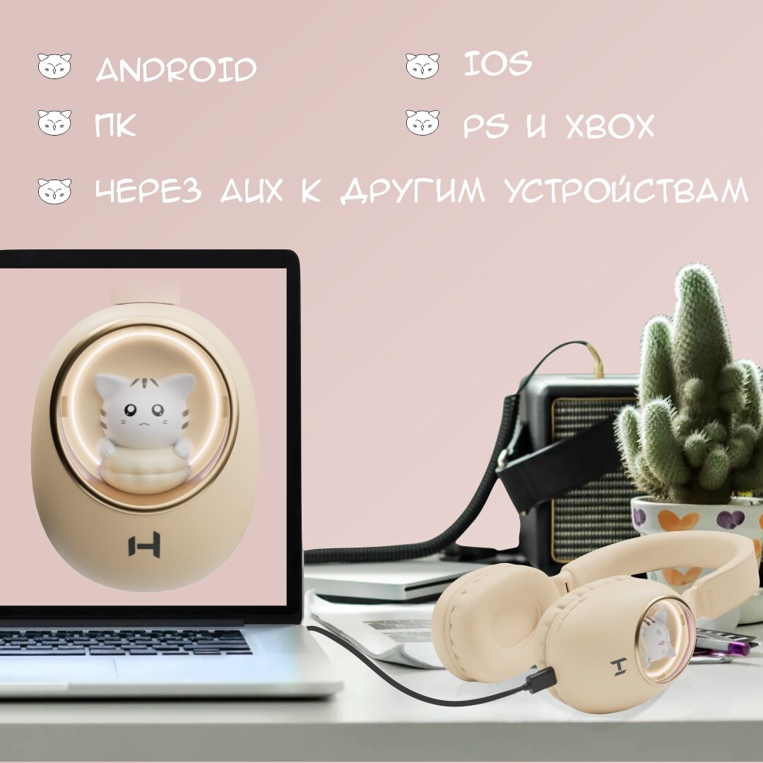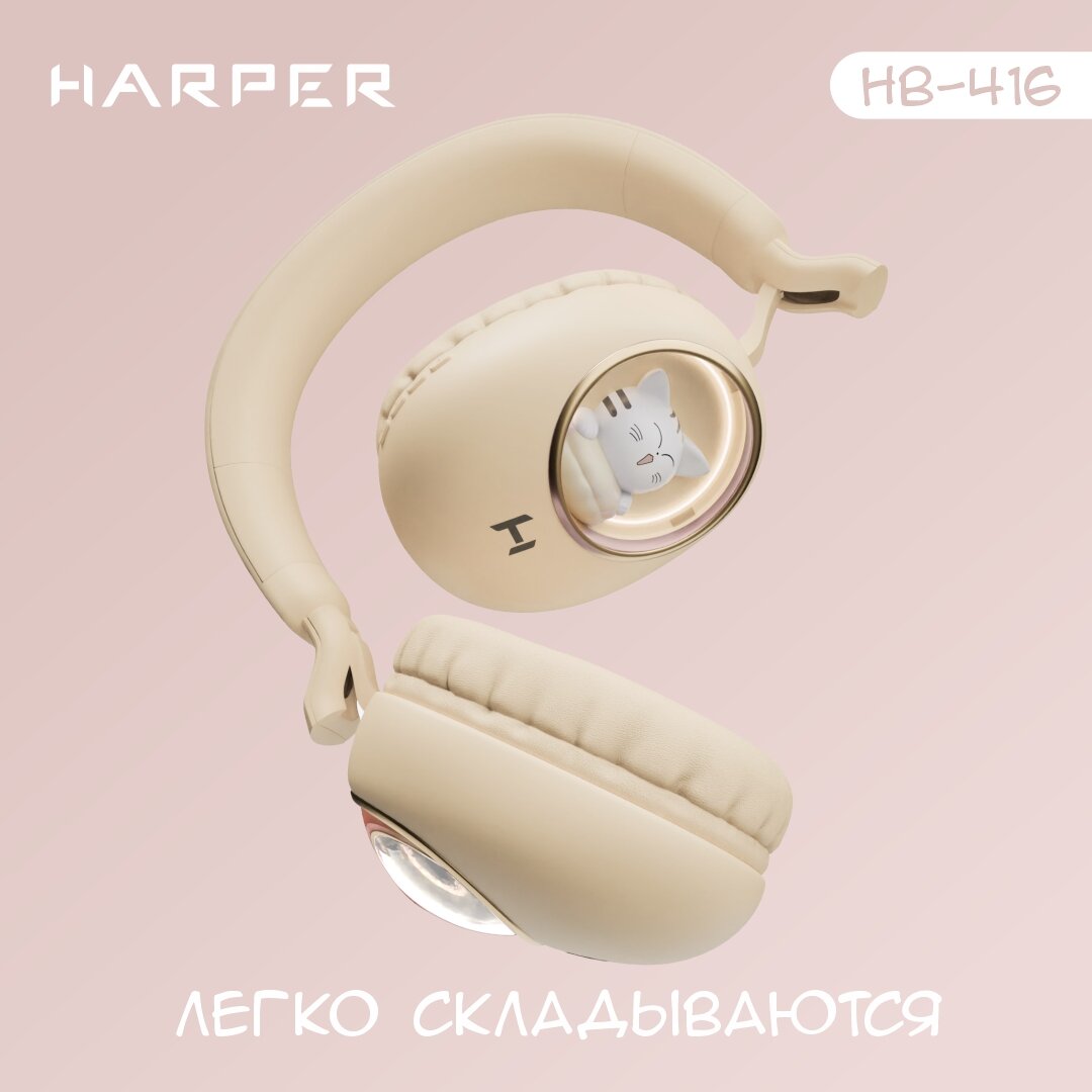 Беспроводные накладные BT наушники HARPER HB-416 (cat in window), бежевый