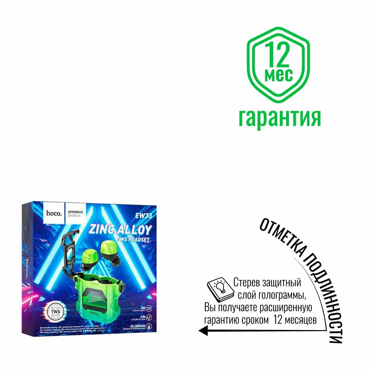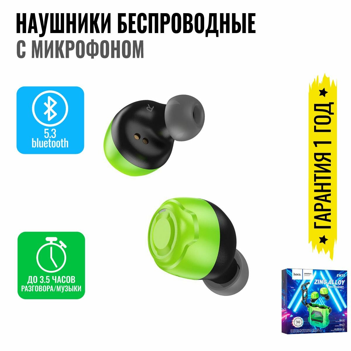 Беспроводные наушники EW33, HOCO, капельки, противоударный кейс, зеленые интересное: