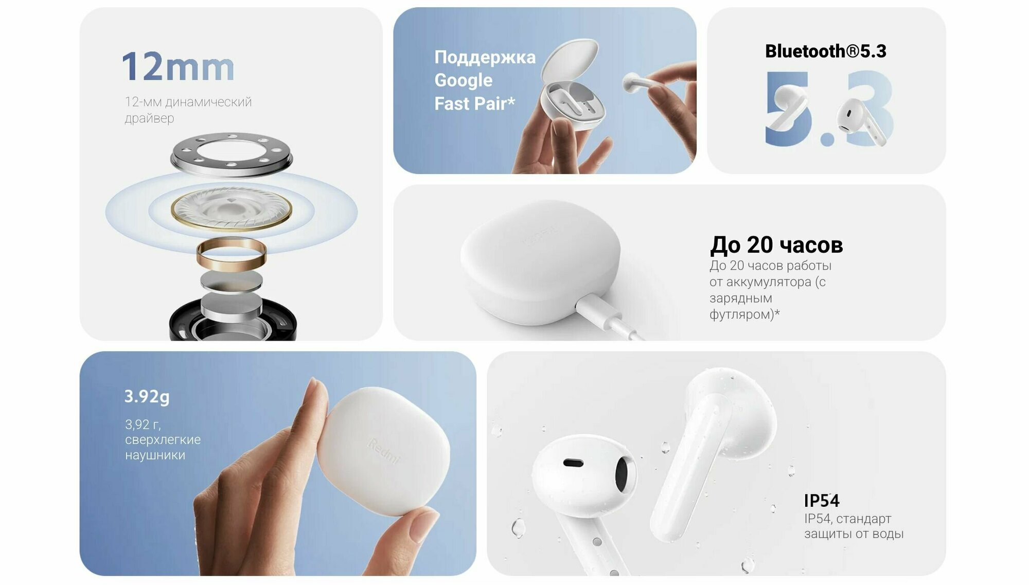 СохранитьНаушники беспроводные Xiaomi Redmi Buds 4 Lite M2231E1 белые интересное: