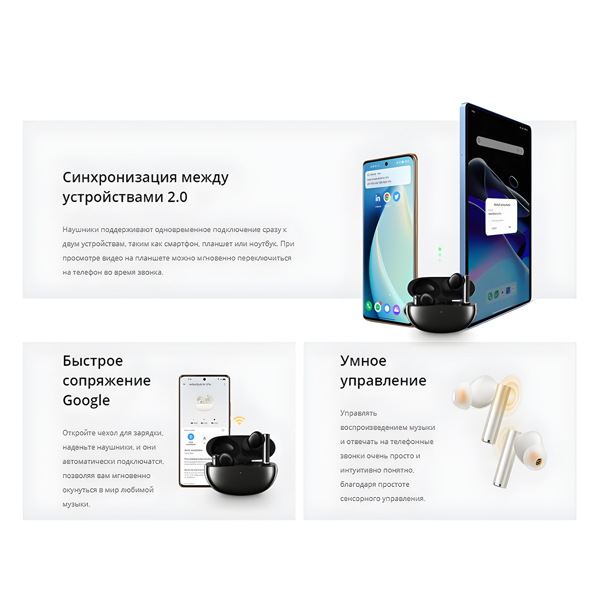 | Функции | Talk through (режим прозрачности) / вызов голосового ассистента / регулировка громкости |