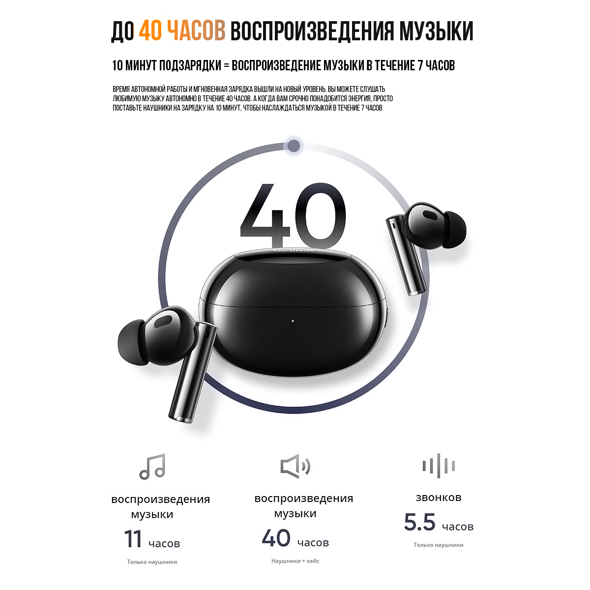 Bluetooth-гарнитура Realme Buds T310, длительное время автономной работы, 50 мс, низкая задержка