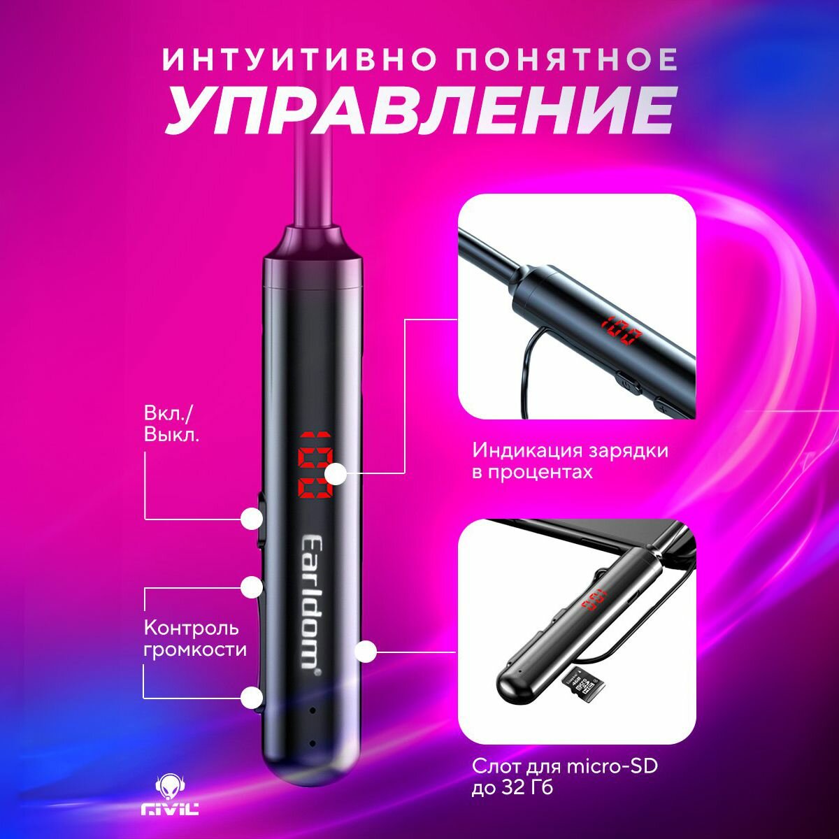 Наушники беспроводные/bluetooth наушники/спортивные наушники Earldom BH50 (60 часов любимой музыки)