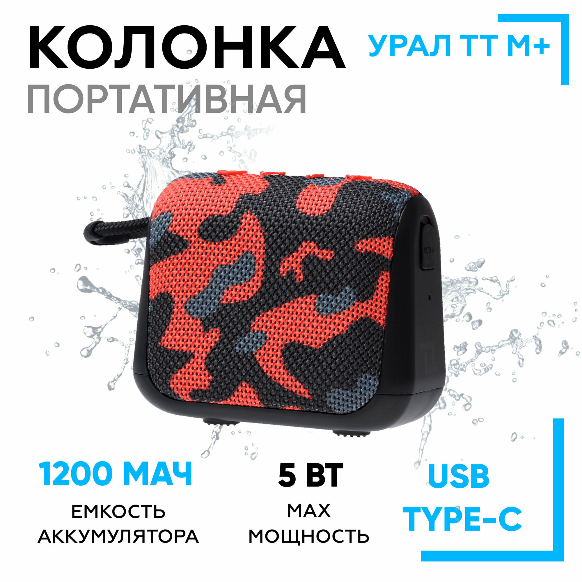 Портативная Bluetooth колонка Урал ТТ М+ Спецназ, водонепроницаемая IP67, 5 Вт Мощность, TWS, FM-радио, беспроводная