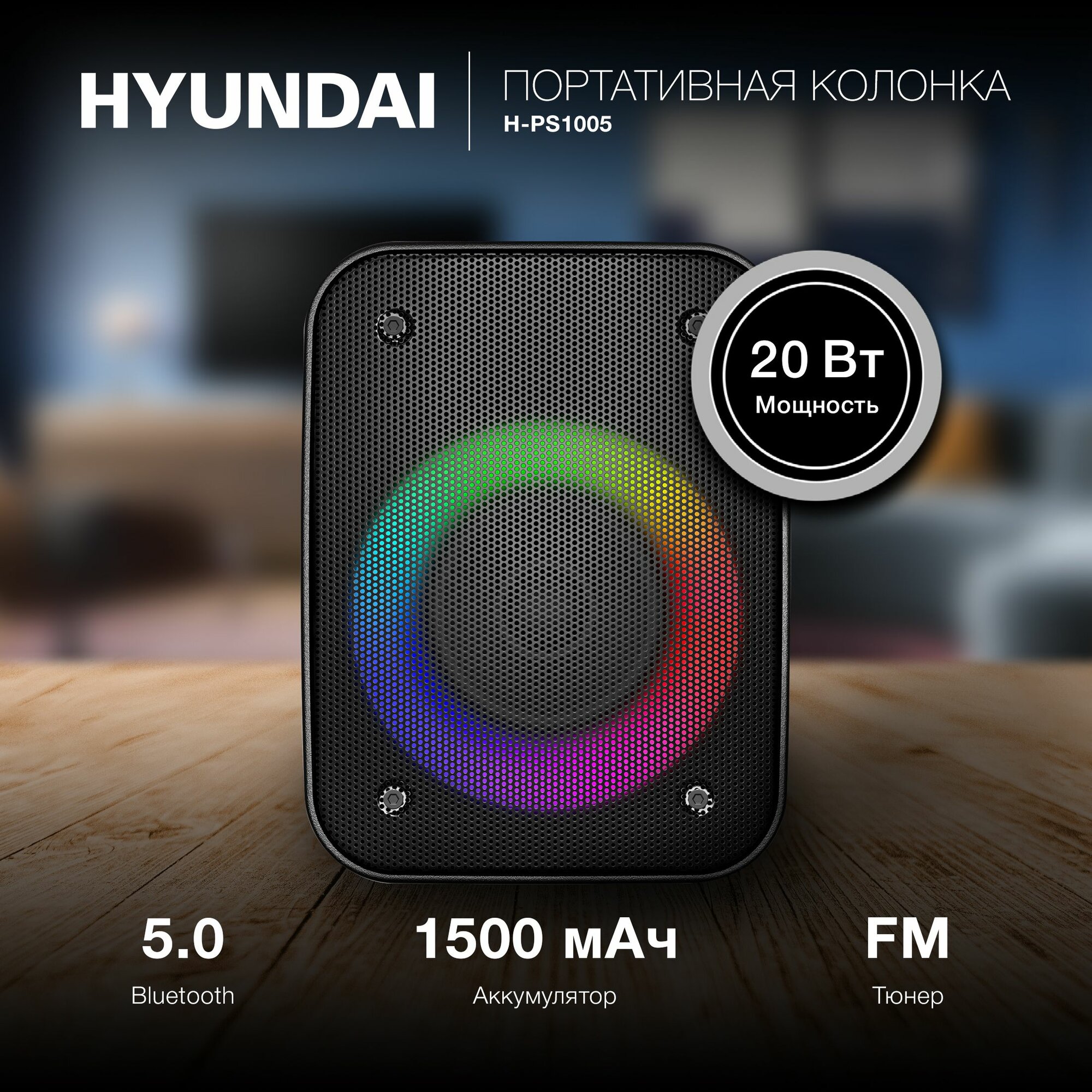 Колонка портативная Hyundai H-PS1005 черный интересное: