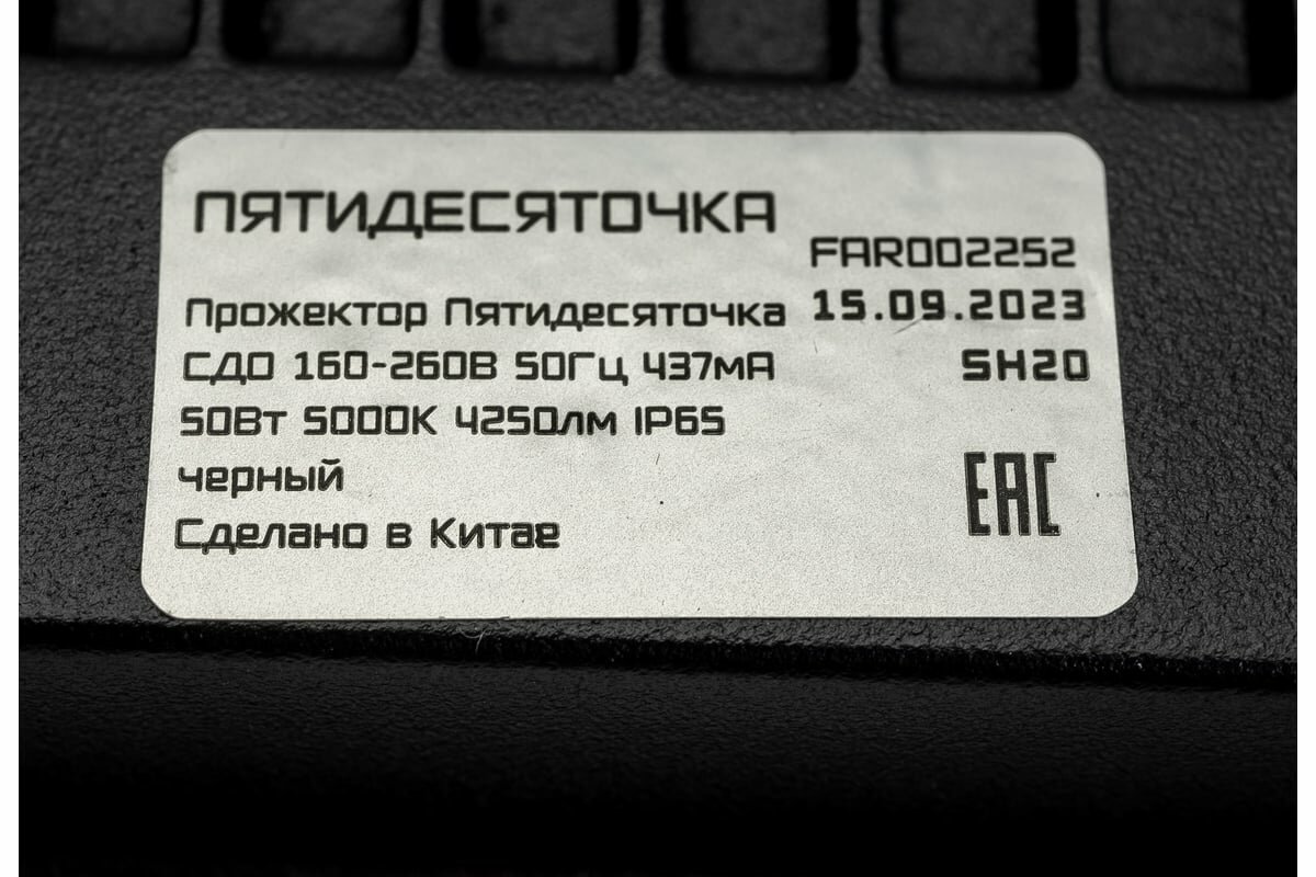 Прожектор LED 50Вт 5000К 4250Лм IP65 черный Пятидесяточка Фарлайт FAR002252