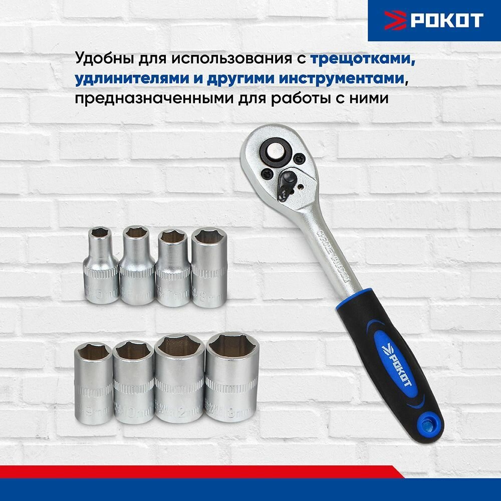 Купить Набор торцевых головок "6 гранные" (8шт) 1/4" 5-6-7-8-9-10-12-13 мм рокот
