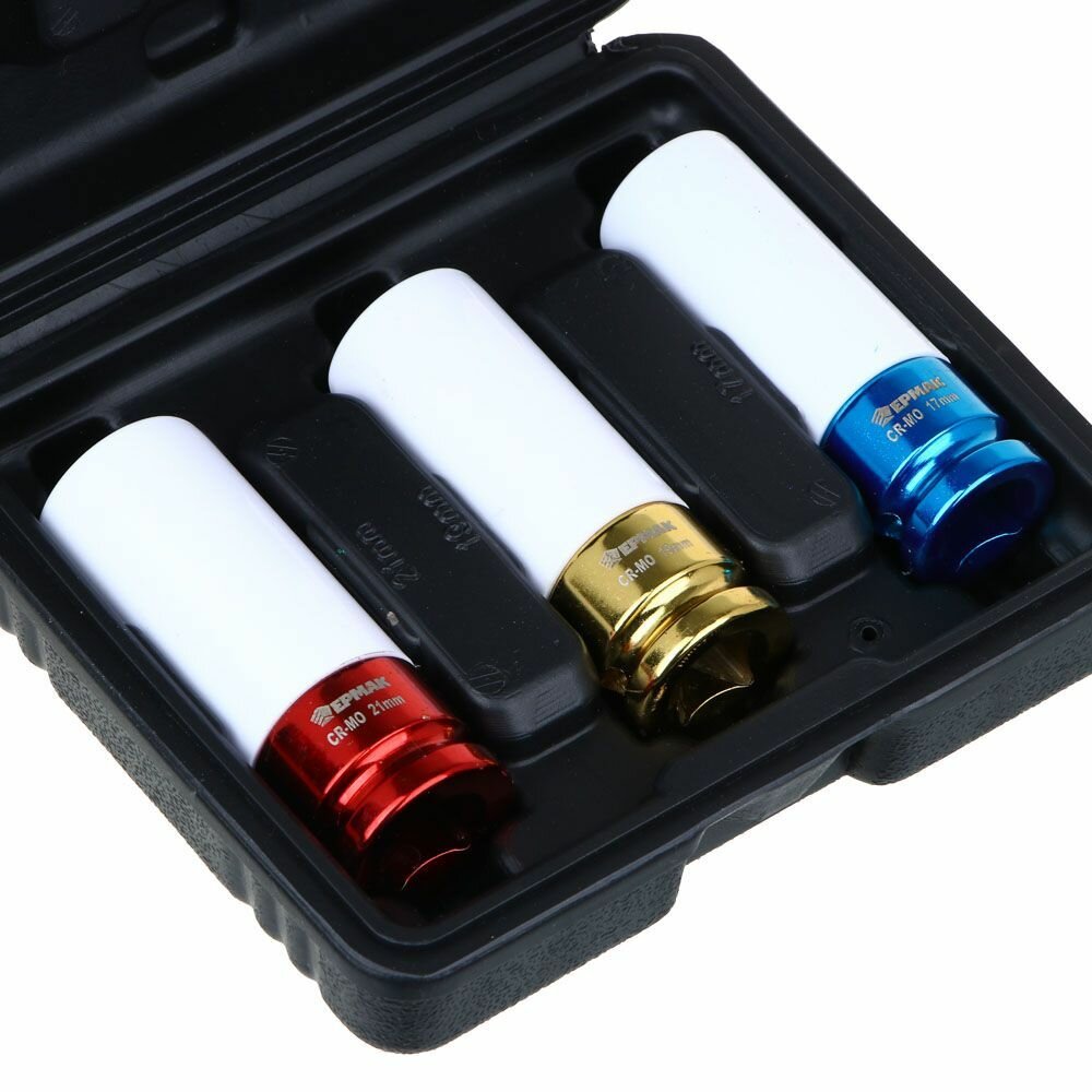Ермак Набор головок для колесных дисков ермак 736-246, ударные, шестигранные, 1/2", 17/19/21 мм