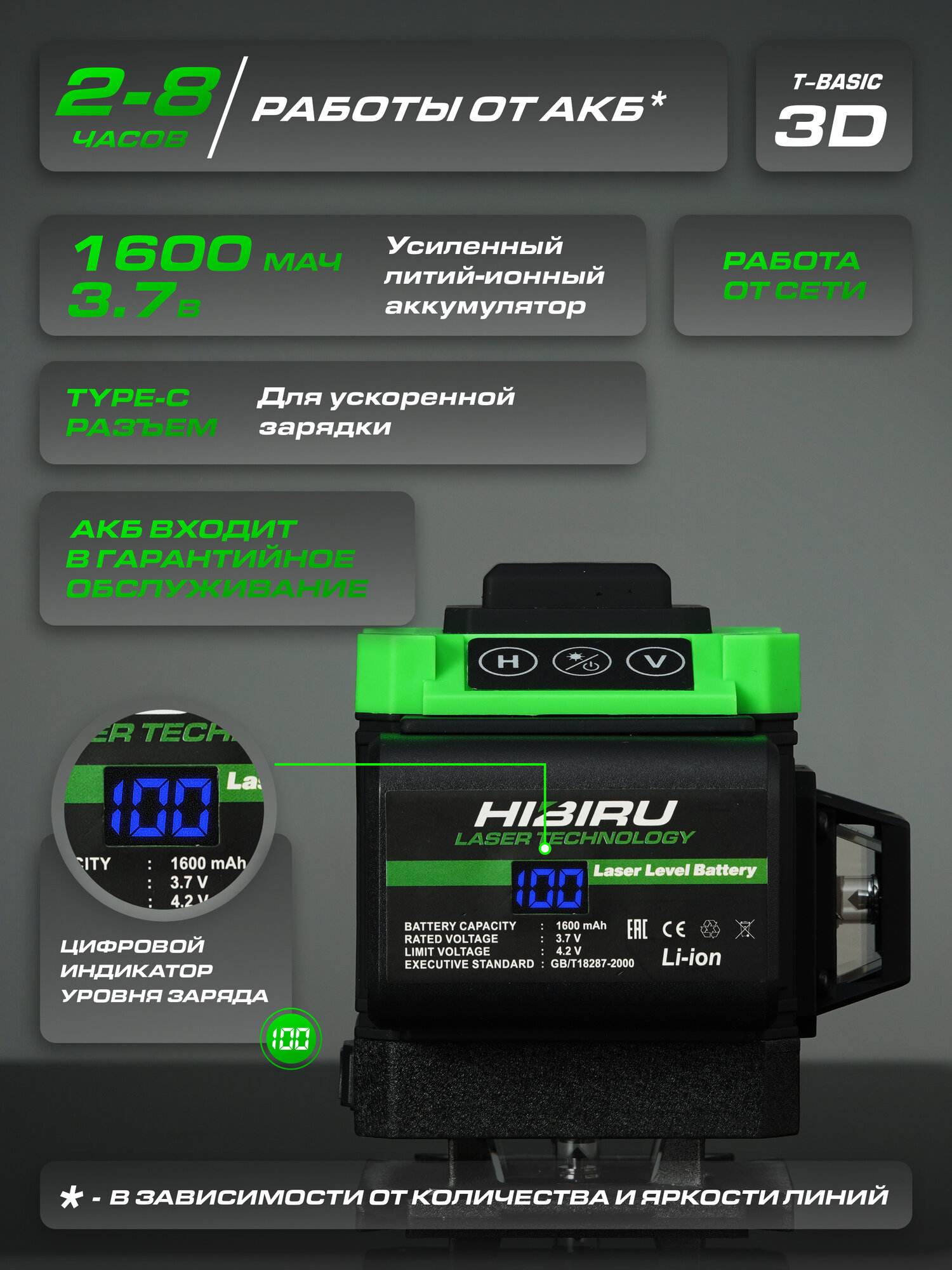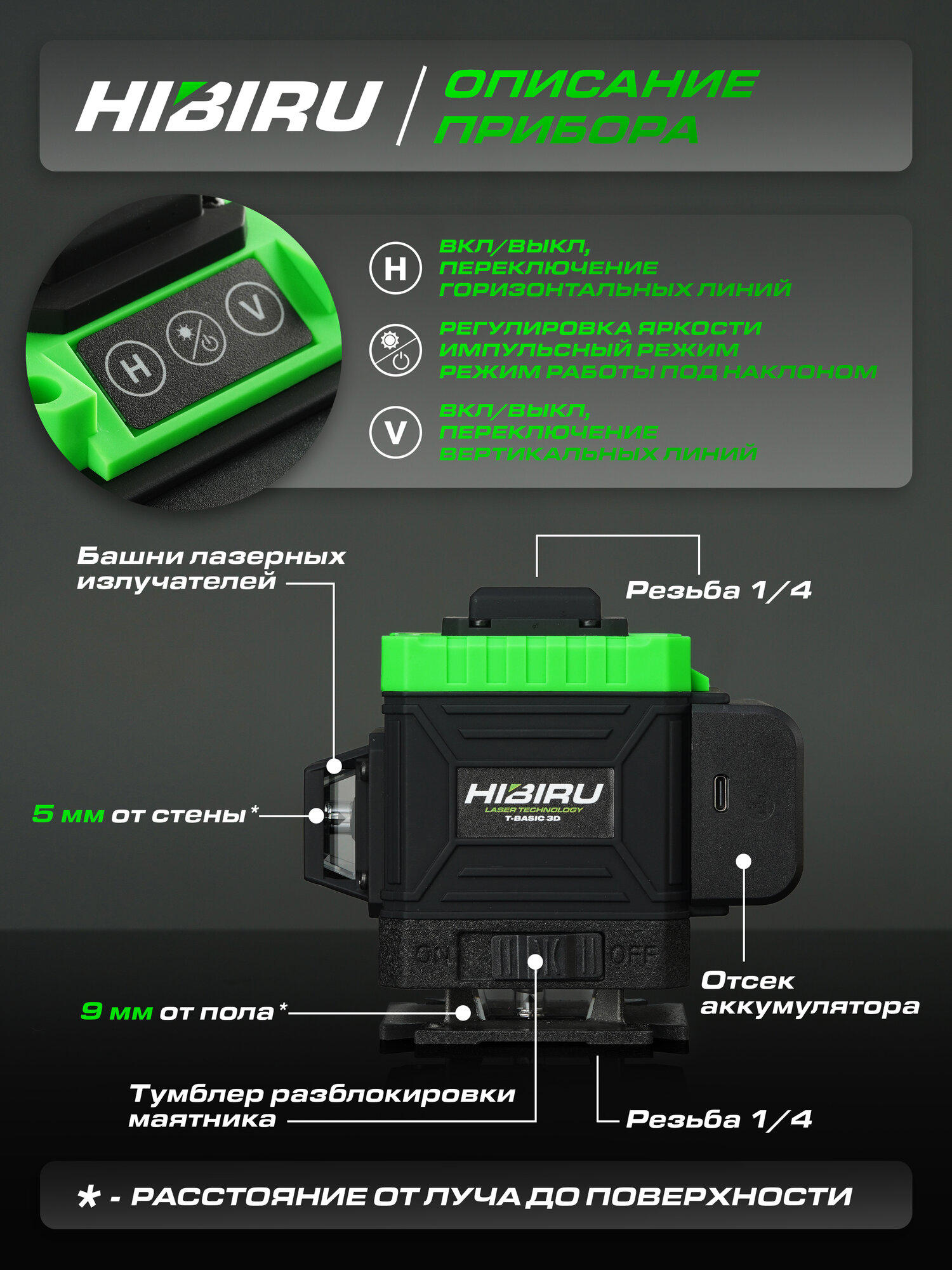 Лазерный уровень Hibiru T-Basic + Штатив 1/4 + откалиброван + гарантия интересное: