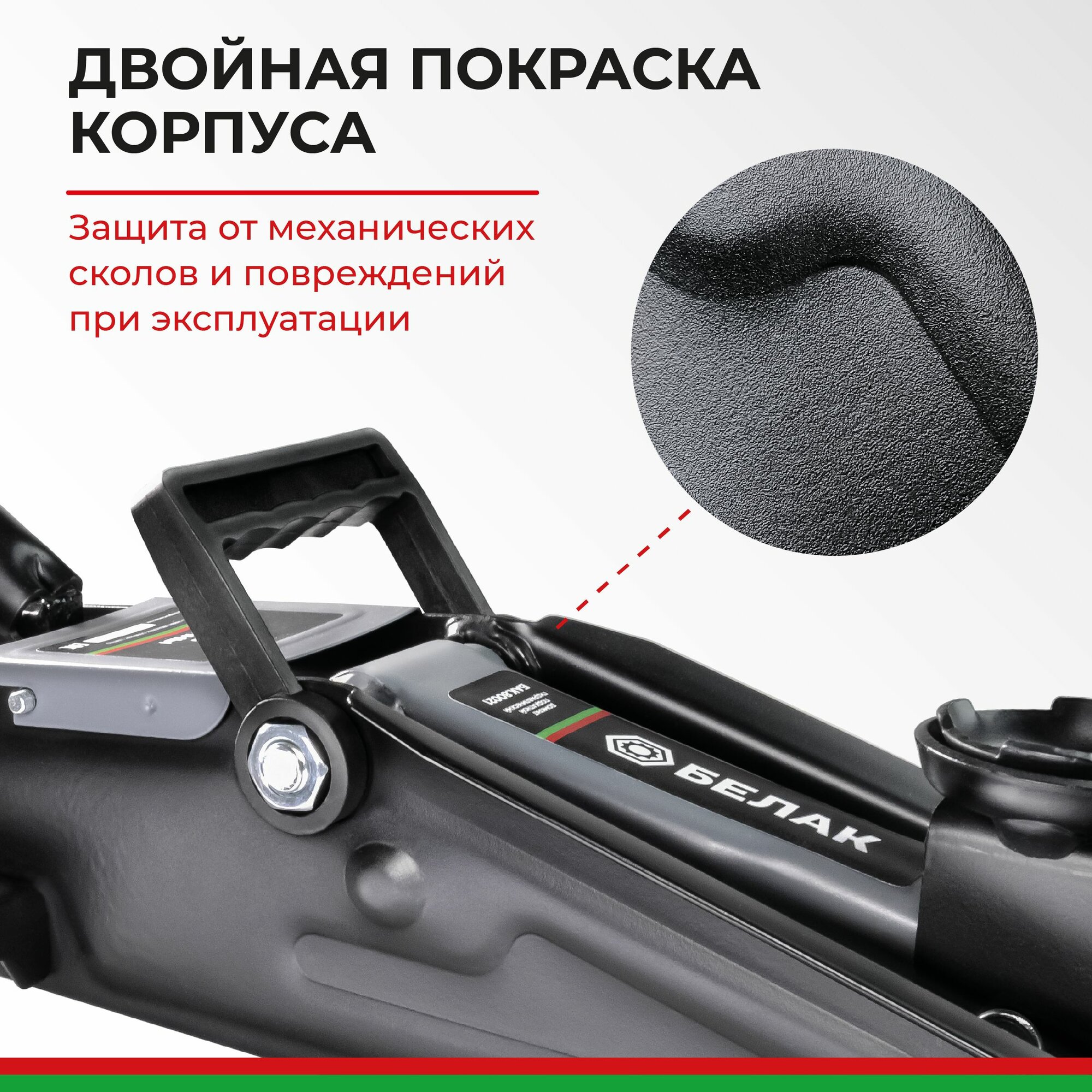 Домкрат подкатной автомобильный гидравлический 2 т БелАК БАК.80021 интересное: