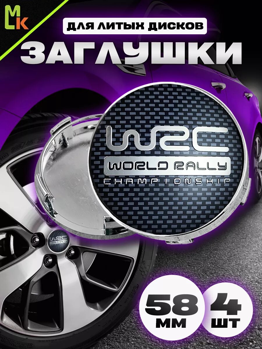 Колпачки на ступицу колеса 4 шт, автоколпак, заглушка диска, колпачки в автомобильные диски, с эмблемой "Карбон WRС" посадочный диаметр 58 мм, 4 шт.