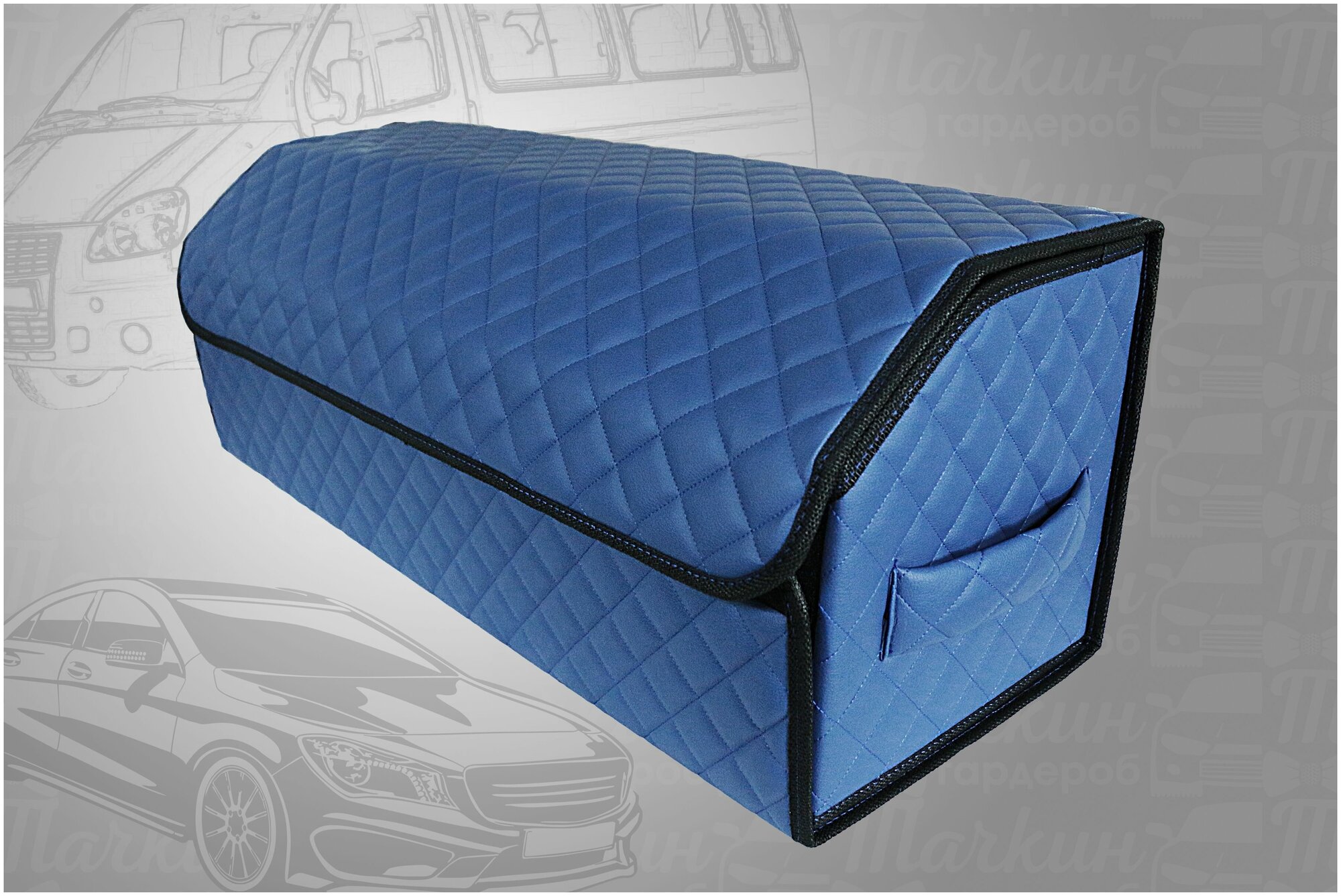 Аксессуары для авто/Органайзер в багажник 80х30х30 рисунок фигурный ромб черный/строчка синяя/саквояж/бокс/кофр для авто