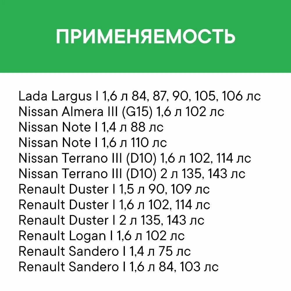 | Модель автомобиля | LADA Largus / Nissan Almera / Nissan Note / Nissan Terrano / Renault Duster / Renault Logan / Renault Sandero |