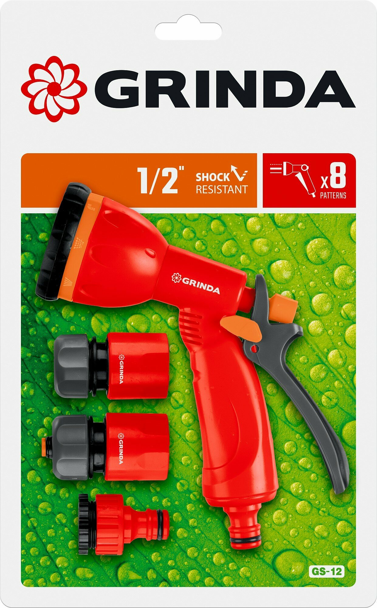GRINDA GS-12 набор поливочный: пистолет с 8 режимами, комплект соединительной арматуры 1/2", пластиковый