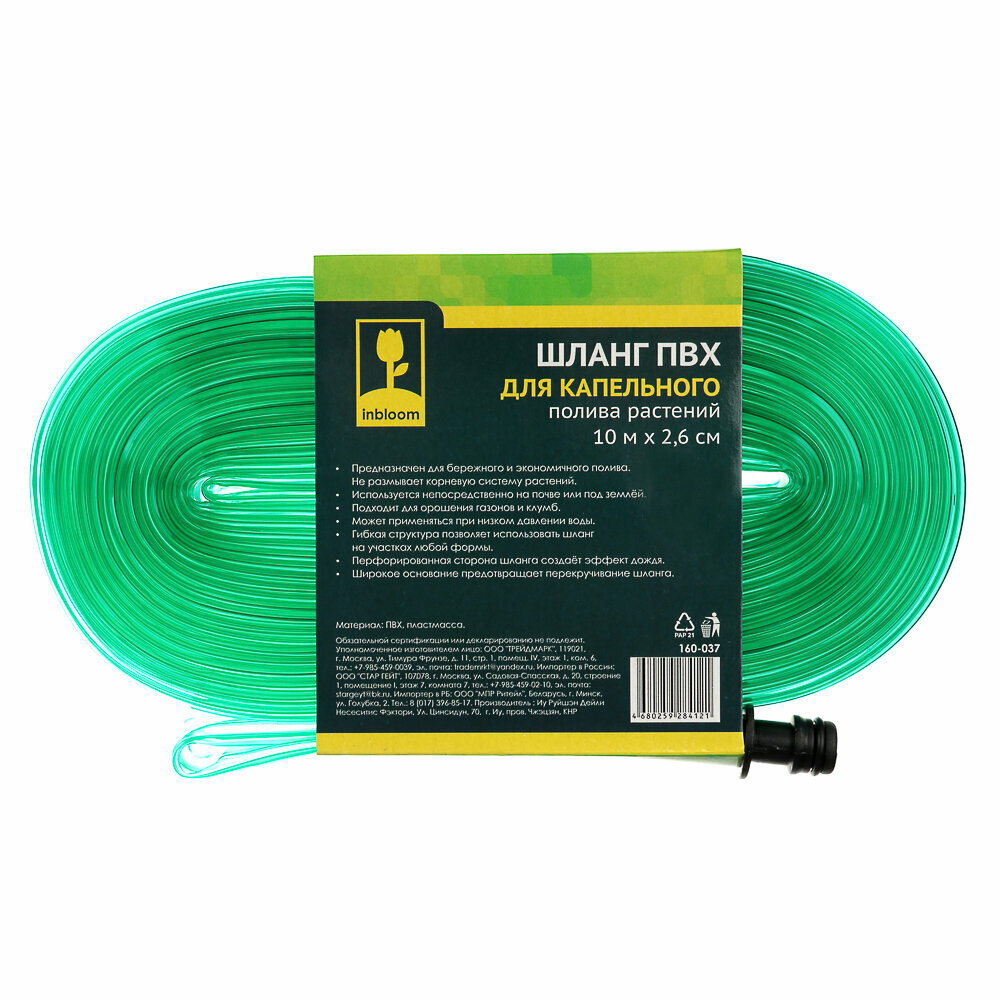 Шланг ПВХ для капельного полива растений 10м x 2,6см INBLOOM интересное: