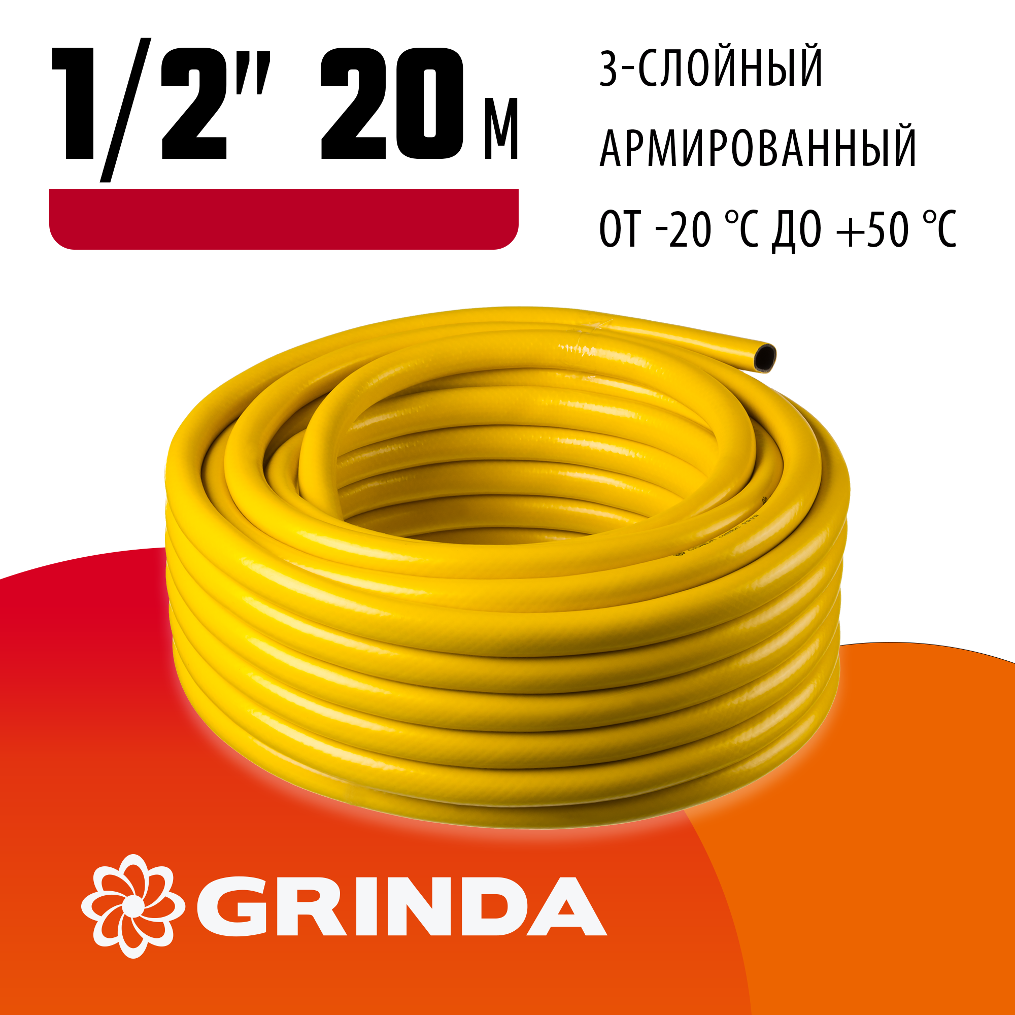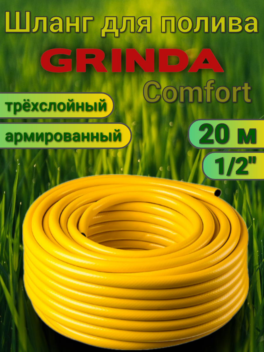 Поливочный шланг GRINDA COMFORT 1/2″ 20 м 30 атм трёхслойный армированный