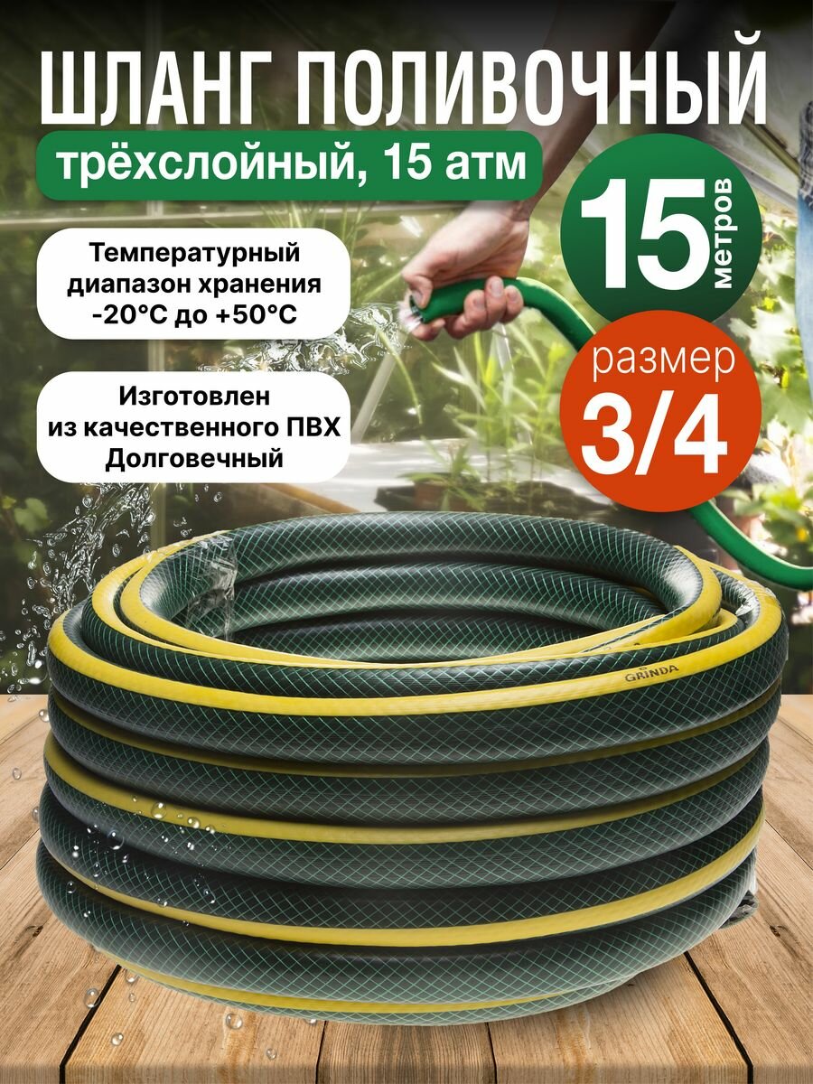 Шланг поливочный GRINDA STANDARD 3/4 , 25 м, 15 атм, трёхслойный, армированный 429000-3/4-25