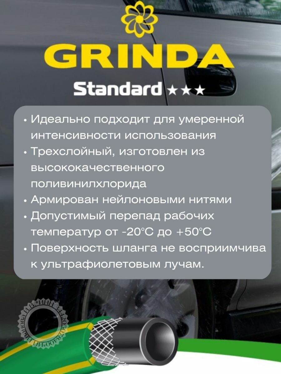 Шланг садовый Grinda STANDARD трёхслойный 3/4", 15 атм, 25 м, 429000-3/4-25