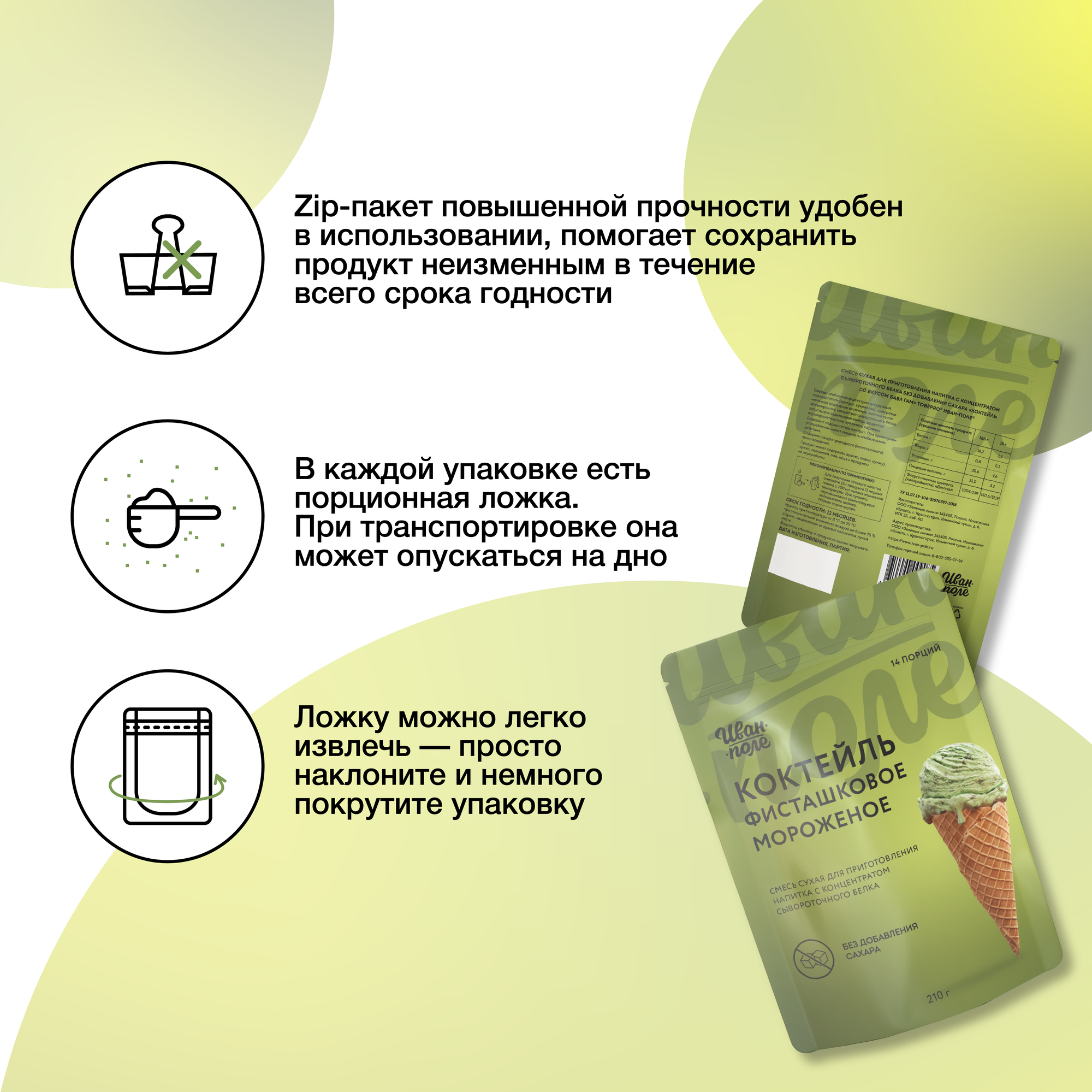 Молочный коктейль Иван-поле Фисташковое мороженое, протеиновый для снижения веса, 210 г/14 порций