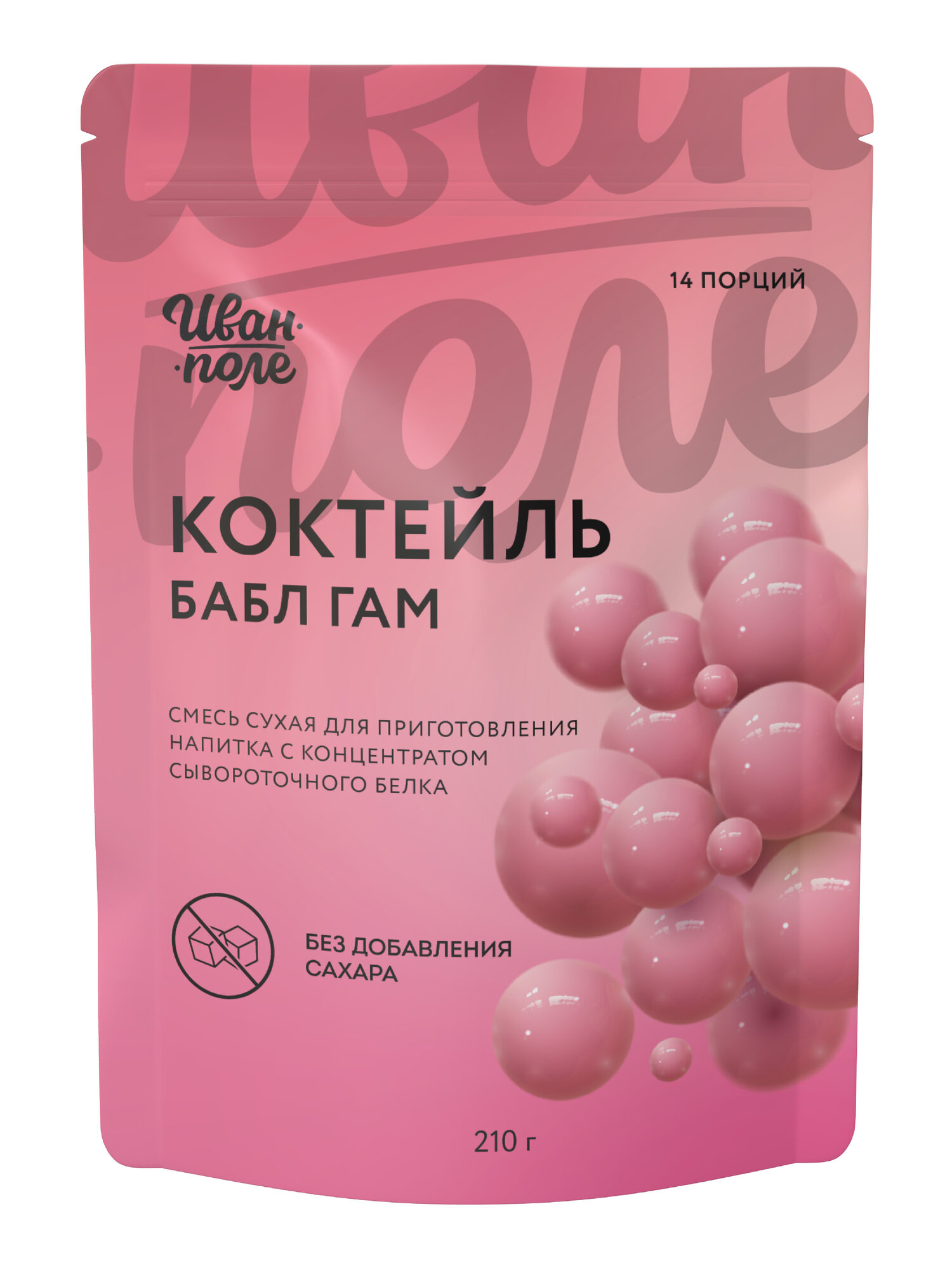 Коктейль молочный Иван-поле Бабл Гам, протеиновый белковый коктейль без сахара для похудения, 210 г
