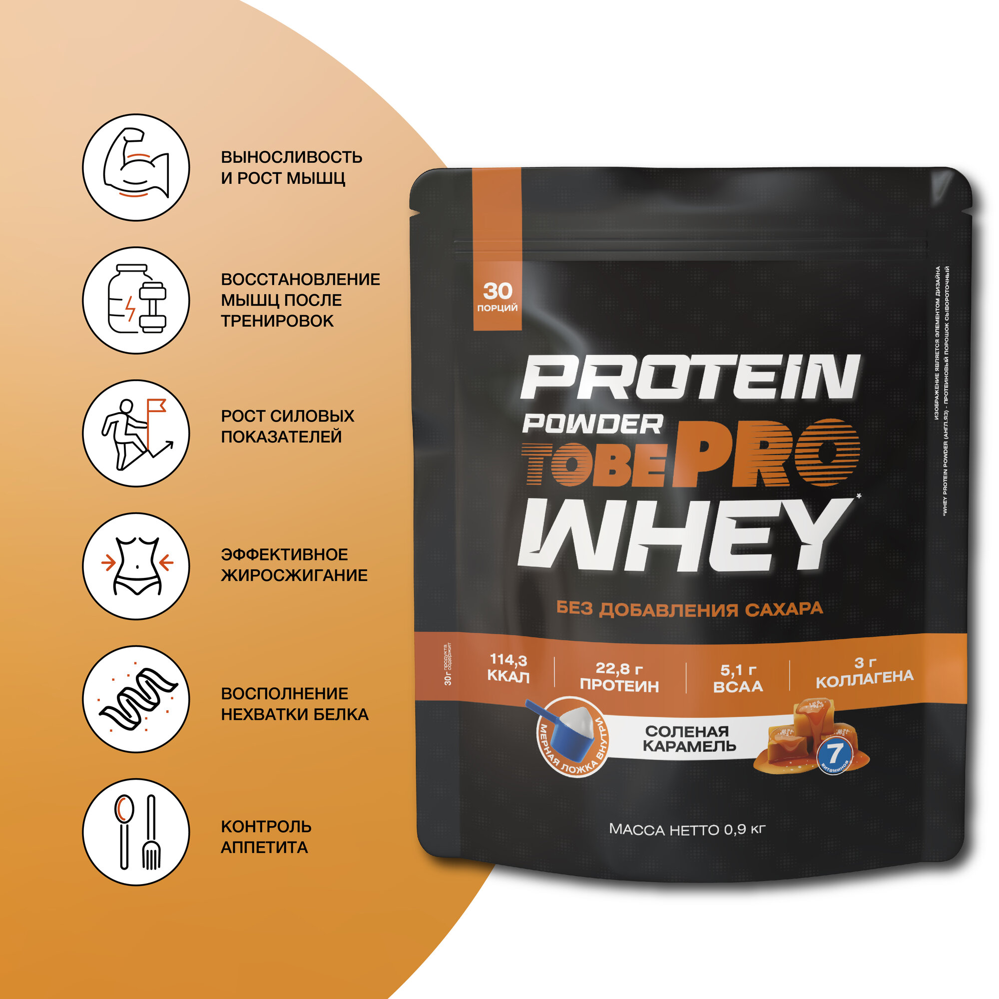 Протеин сывороточный без сахара TobePRO Whey Protein с коллагеном Соленая карамель , 900 г/30 порций