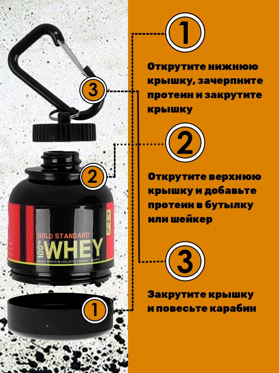 Банка для спортивного питания с карабином и петлей для переноски 100 миллилитров интересное: