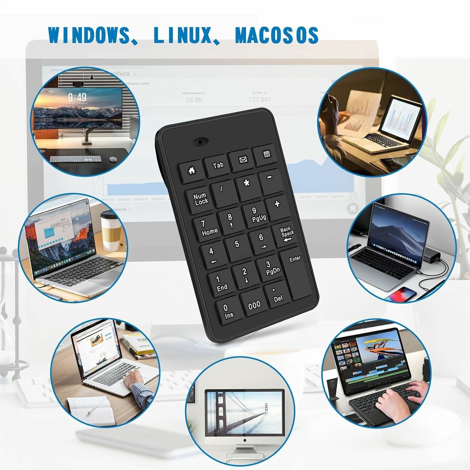 Купить Миниатюрная беспроводная клавиатура NumPad, цифровая клавиатура 2.4 ГГц цифровой блок, кейпад. Для бухгалтера, банковских работников, ноутбука, планшета, для игр (BKB-2.8)
