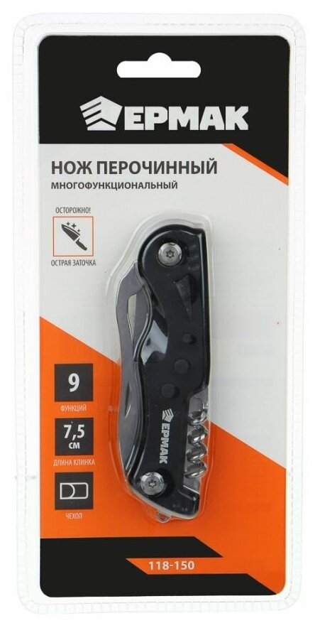 Купить Нож перочинный многофункциональный ермак, 9 функций, 18.5см, нерж. сталь.