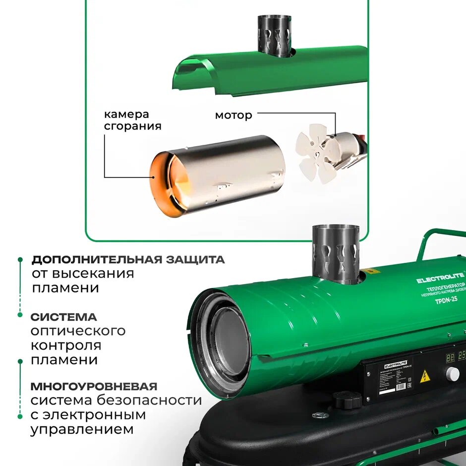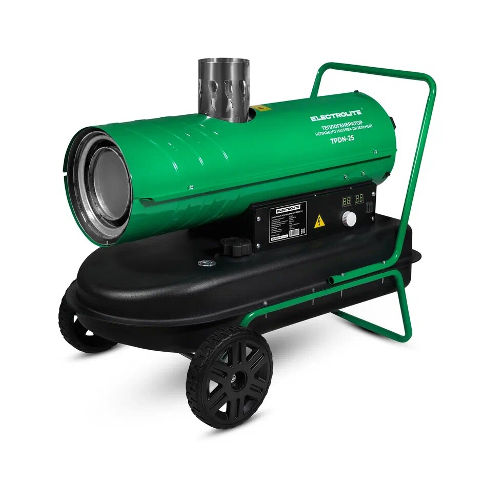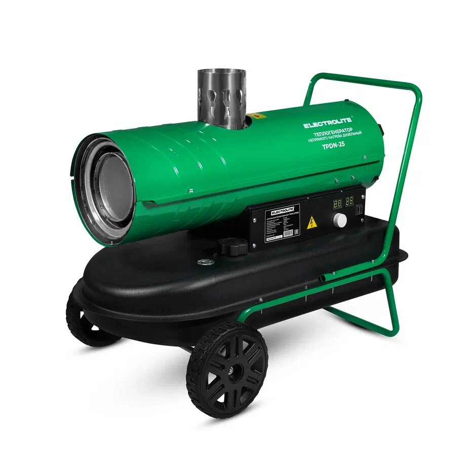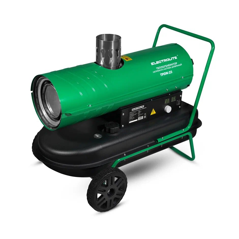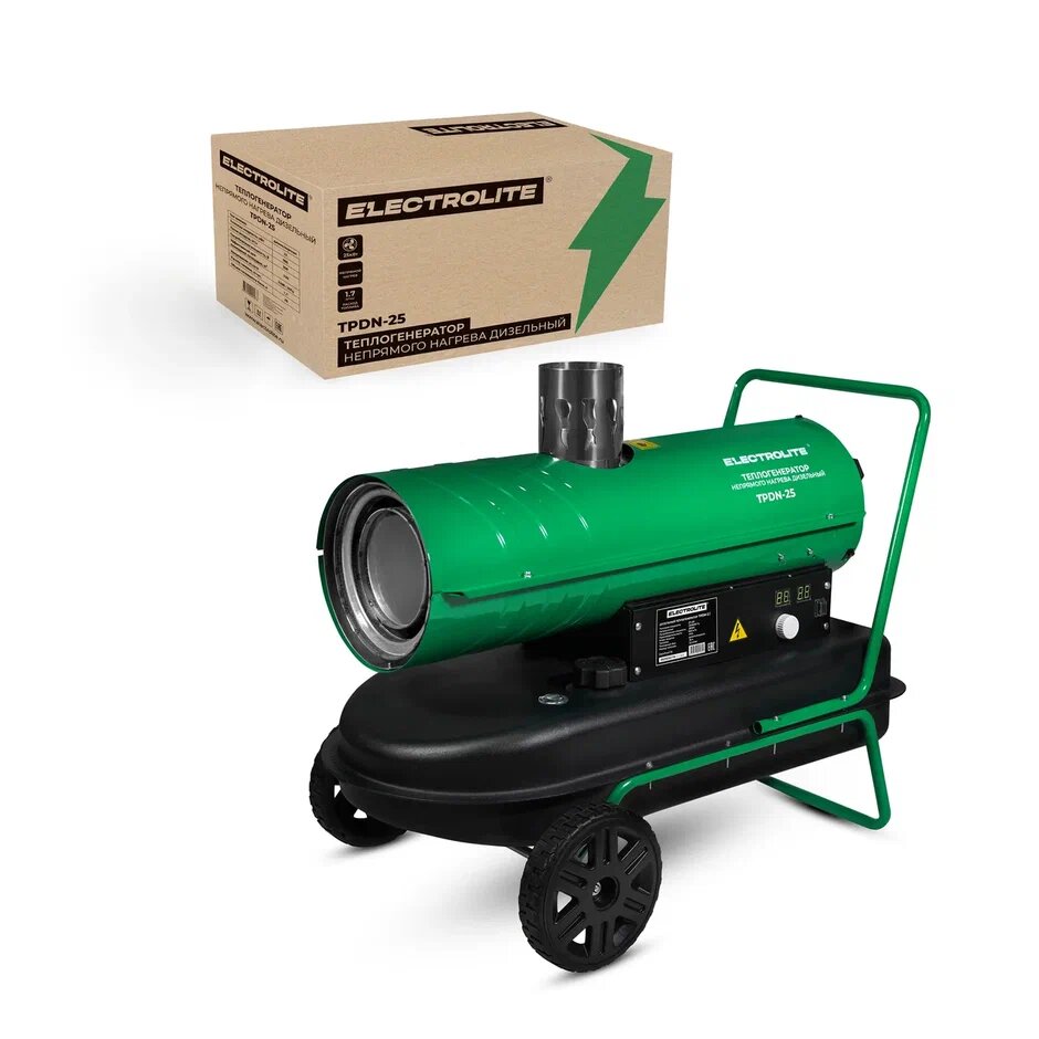 Тепловая пушка / Дизельная тепловая пушка / Пушка тепловая / Тепловая пушка дизельная Electrolite TPDN-25EL ( 25000 Вт, 900 м3/час, 1.7 л/час, 36 л бак, непрямой нагрев) с электронной регулировкой температуры